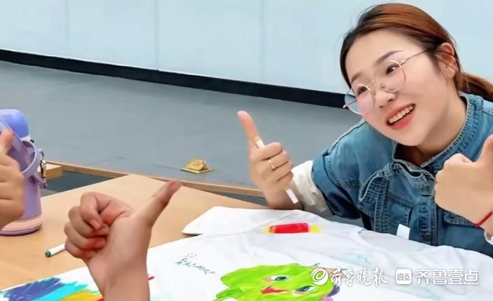 齐鲁工大的学生志愿者正与孤独症儿童共绘多彩世界。