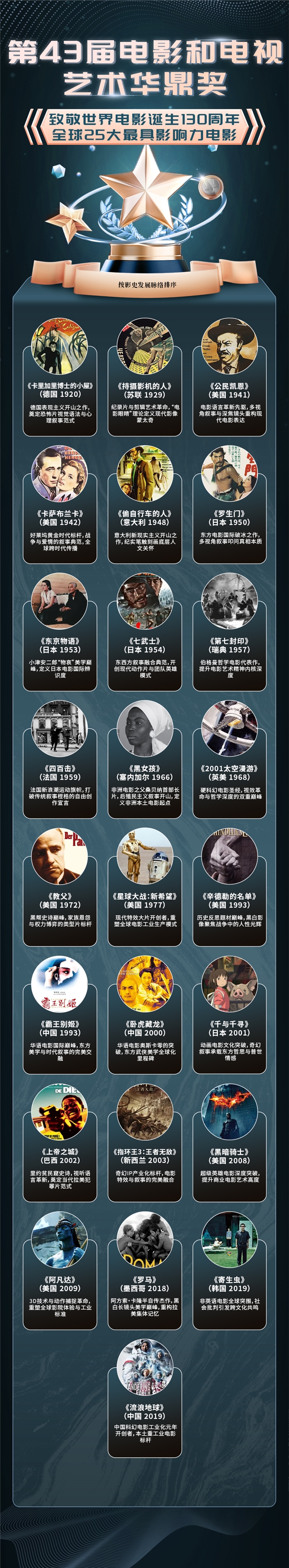 即便是在东方电影内部,华鼎奖也挖掘出了不同维度的经典之作。日本电影不仅有《罗生门》《七武士》这样被西方有限认可的作品,更有《东京物语》这样以“物哀”美学打动人心的家庭伦理片,其细腻的情感表达与独特的东方视角,在以往西方评选中常被视为“过于内敛”而遭忽视。华语电影的入选则更具层次感:《霸王别姬》代表东方艺术电影的巅峰,《卧虎藏龙》实现文化传播的突破,《流浪地球》则标志着中国重工业电影的崛起,三者共同构成了华语电影多元发展的全貌,打破了西方对华语电影“功夫片”“艺术片”的刻板印象。