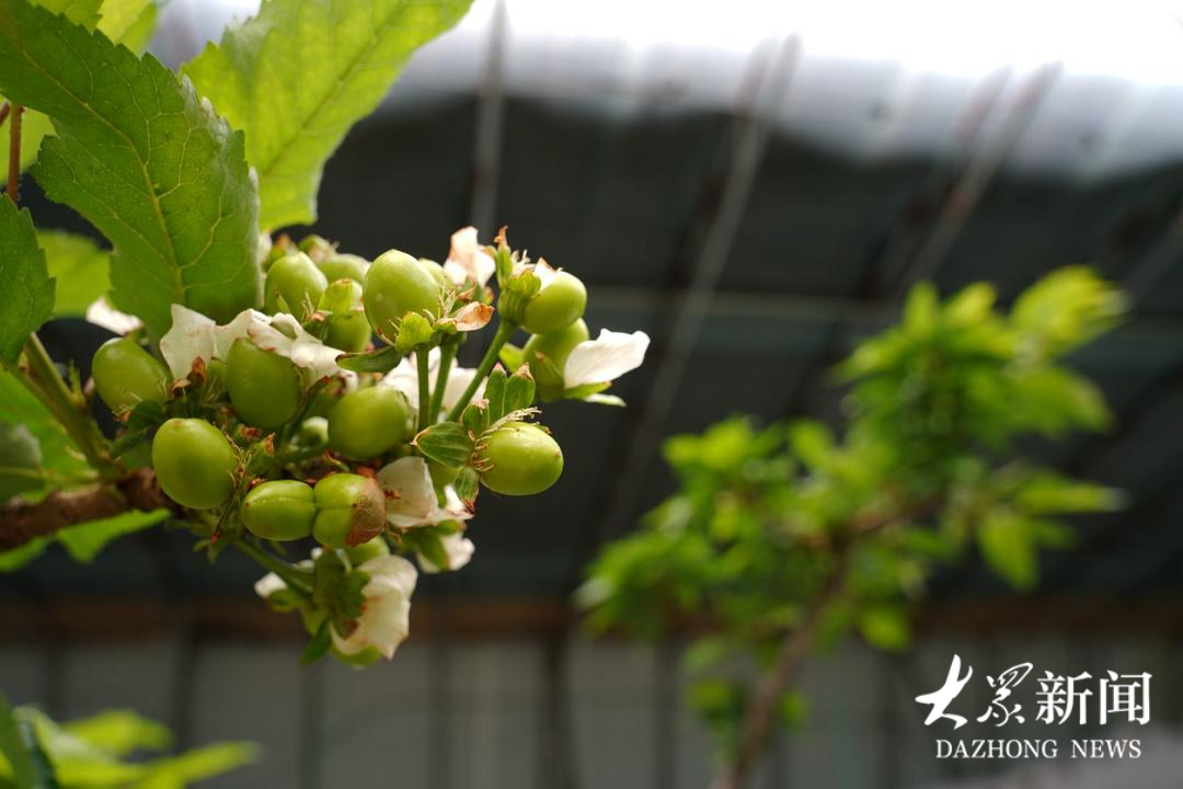 而后,工人们在10月底前完成人工授粉,11月15日前后洗果、喷粉,经过生长期精细的管理与养护,樱桃在非时令也能茁壮生长,果实将以甜蜜回馈杨振伟等人沉甸甸的用心。