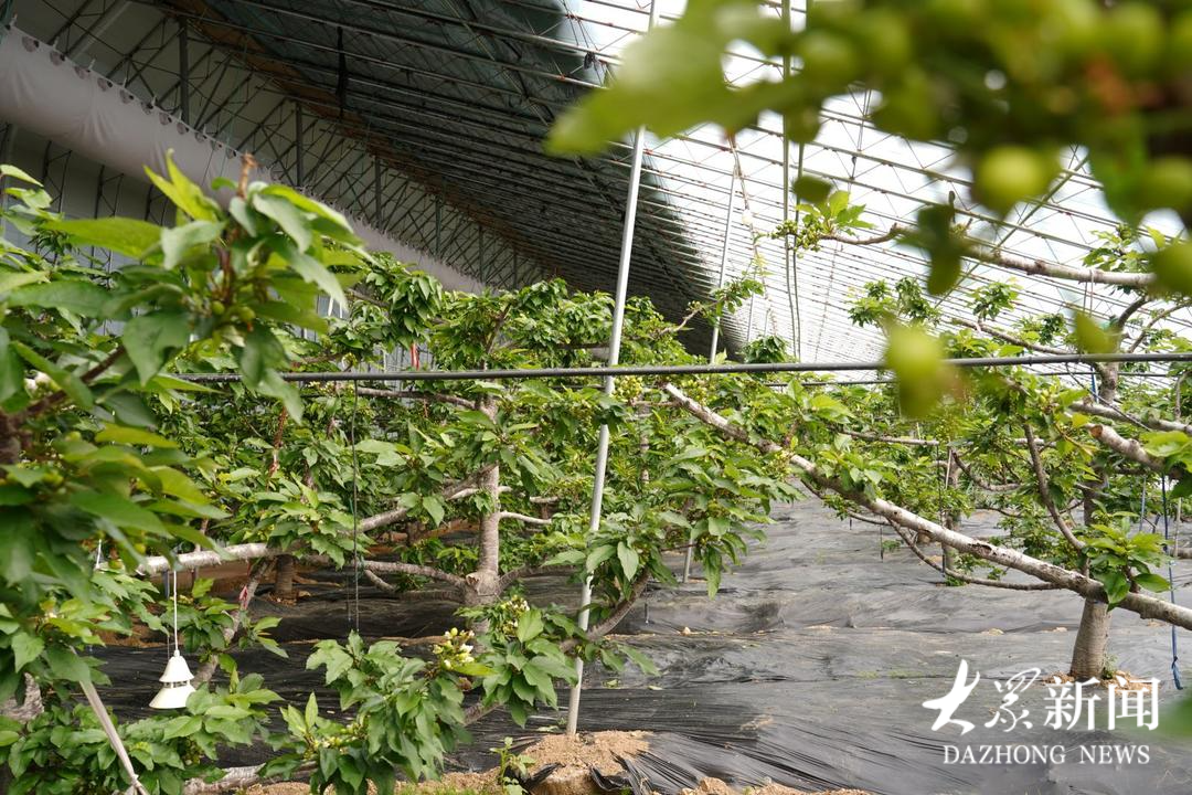 寒冬时节,沂蒙山区层林尽染,万木萧疏。沂源县悦庄镇下龙巷村的山坳间,一排排现代化温室大棚却孕育着反季节的生机。走进其中一座,一股暖流裹挟着淡淡的花果清香扑面而来。樱桃树上长满茂密的叶片,掩映着一簇簇花生般大小的青涩果实。