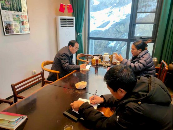 12月15日,乡党委书记、四级调研员边立峰与东岳山居民宿负责人就企业发展相关问题进行沟通交流。