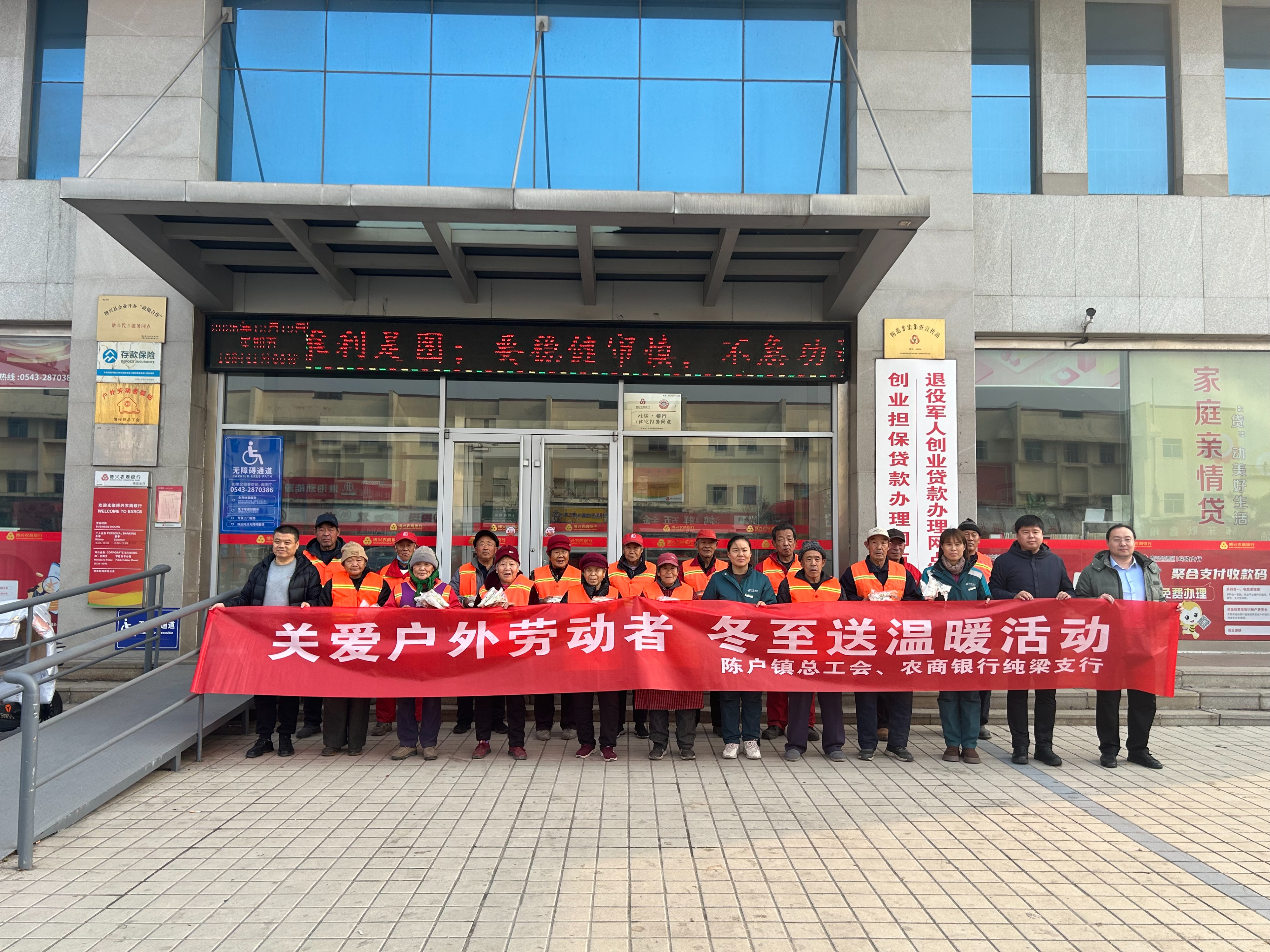 近日,为传递社会温情,关爱户外劳动者,博兴农商银行纯梁支行党支部携手陈户镇总工会开展了冬至送饺子暖心活动,邀请辖区环卫工人走进营业厅,共享冬日温暖。
