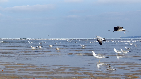 “以辛安河海滩为例,这里能成为海鸥‘乐园’,有两大核心优势。”左进城分析,其一,食物资源丰富。辛安河河口湿地及水域中,小鱼、小虾、甲壳类、其他无脊椎动物等随处可见,附近扇贝养殖加工产生的废弃物,也为海鸥提供了充足的食物来源。其二,栖息环境优越。辛安河入海口处退潮时裸露的大面积滩涂,为不擅长潜水的海鸥提供了理想的觅食场所,加之优美的环境、优良的水质,共同为海鸥营造了舒适的栖息空间。