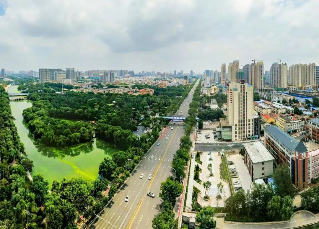 从中华路两侧来说,当年的拆墙透绿,只是羞羞答答的露脸,让人看不足兴。如今,沿途大大小小的生态绿地、公园、河道,不下50多处,全都大模大样地暴露在一路两边或交口四角,水绿草青,五彩缤纷,让人目不暇接。自东向西走来,第一个就是消防主题公园,与开发区人民广场遥相呼应。遮天蔽日的高树、花木扶疏的幽径,青葱翠绿的竹林,宽敞舒适的健身广场,再加上随处可见的消防文化,为广大市民营造了休闲消遣的绿色空间。与市委、市政府毗邻的就是天香公园。园内青松翠柏,高耸挺拔,竹影婆娑,苍翠欲滴。这些四季常青的植物,让人常年见绿,心清气爽。特别是清香四溢的树阵广场,神秘玄妙的太极广场,活灵活现的十二生肖广场,让奔跑追梦的年轻人以及喜欢慢生活的老年人,每天“接引”无限,“回眸”不尽,都能从中找到“欢乐嘉年华”的感觉。