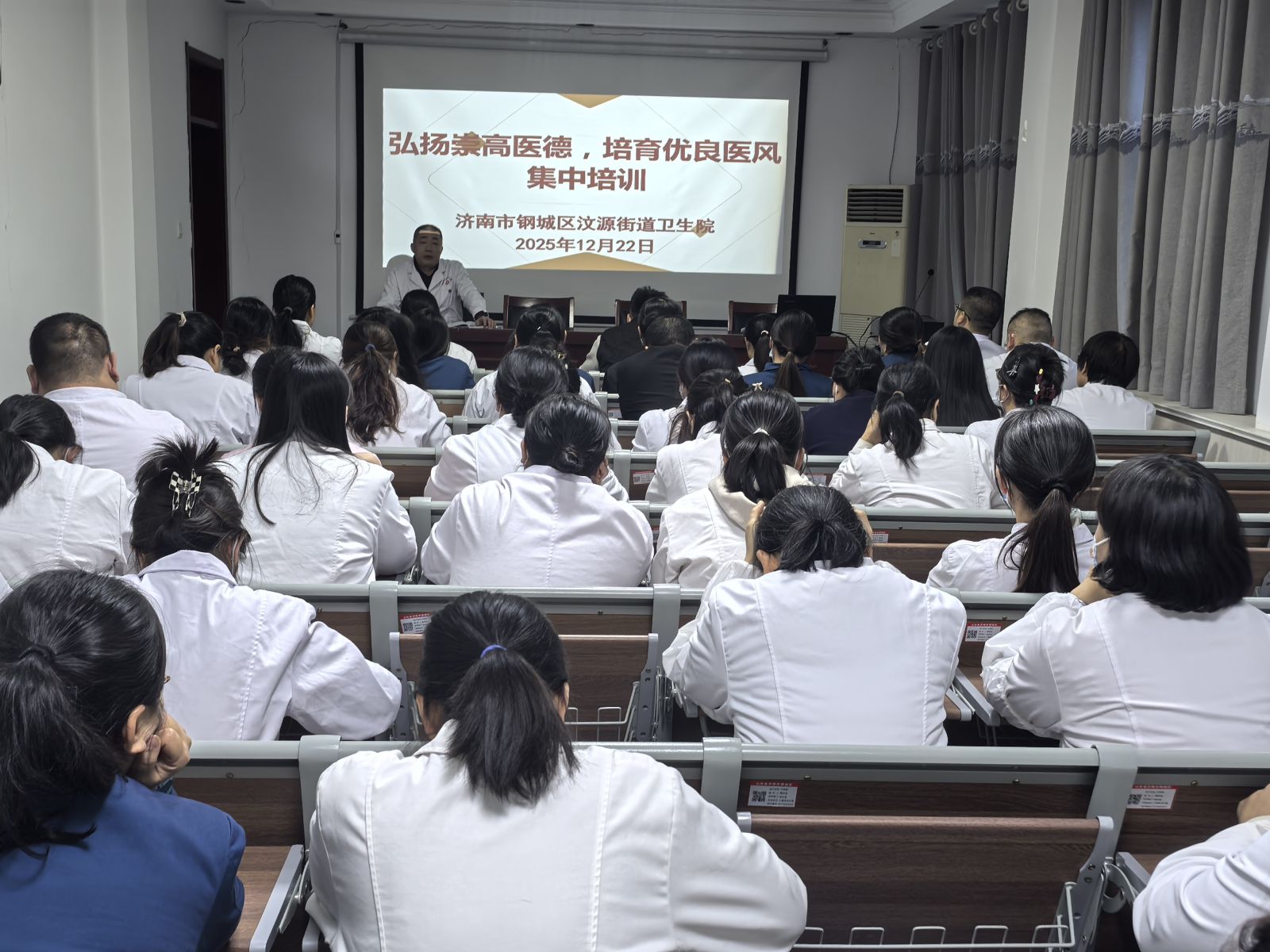 12月22日,钢城区汶源街道卫生院组织开展了以“弘扬崇高医德,培育优良医风”为主题的医药领域整治暨医德医风集中专题培训,全院医务人员全员参与。