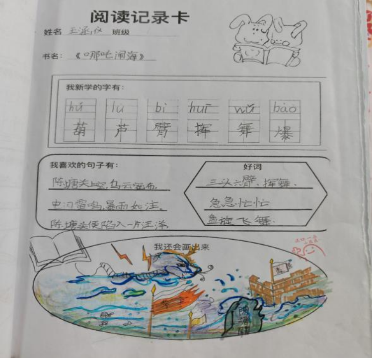 多元实践展风采,妙笔生花绘成长。除静心阅读外,系列活动还设置了手抄报创作、创意书签制作、阅读记录卡填写等实践环节。在“好书推荐官”手抄报创作中,孩子们以整洁的版面设计、明亮的色彩勾勒、工整的文字书写,通过摘抄精彩片段、分享阅读感悟、绘制可爱插画等形式,让好书在班级与校园间流转;创意书签制作现场,一张卡纸、几支彩笔在孩子们手中变身独特作品,故事角色、读书格言跃然其上,既标记阅读进度,更承载着与书籍的情感联结;阅读记录卡则成为孩子们的“阅读小账本”,书名、作者、阅读时间清晰标注,精彩词句认真摘抄,质朴感悟流露真心,让阅读从“读过”变为“读懂”,成长足迹清晰可寻。