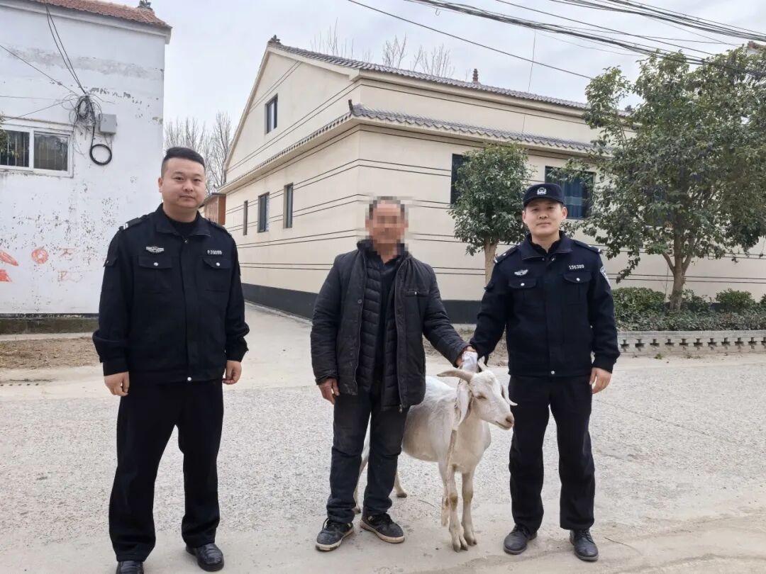 原来,这位热心村民发现这只无人看管的 “无主” 山羊后,怕它走失或遭遇危险,便暂时将它拴在自家树下,静静等待主人前来认领。当民警带着王先生赶到时,看到山羊安然无恙,王先生悬着的心终于落了地,连连向民警道谢:“太感谢你们了!本来以为找不回来了,没想到你们这么快就帮我们找到了,真是把我们的小事当成大事办!”