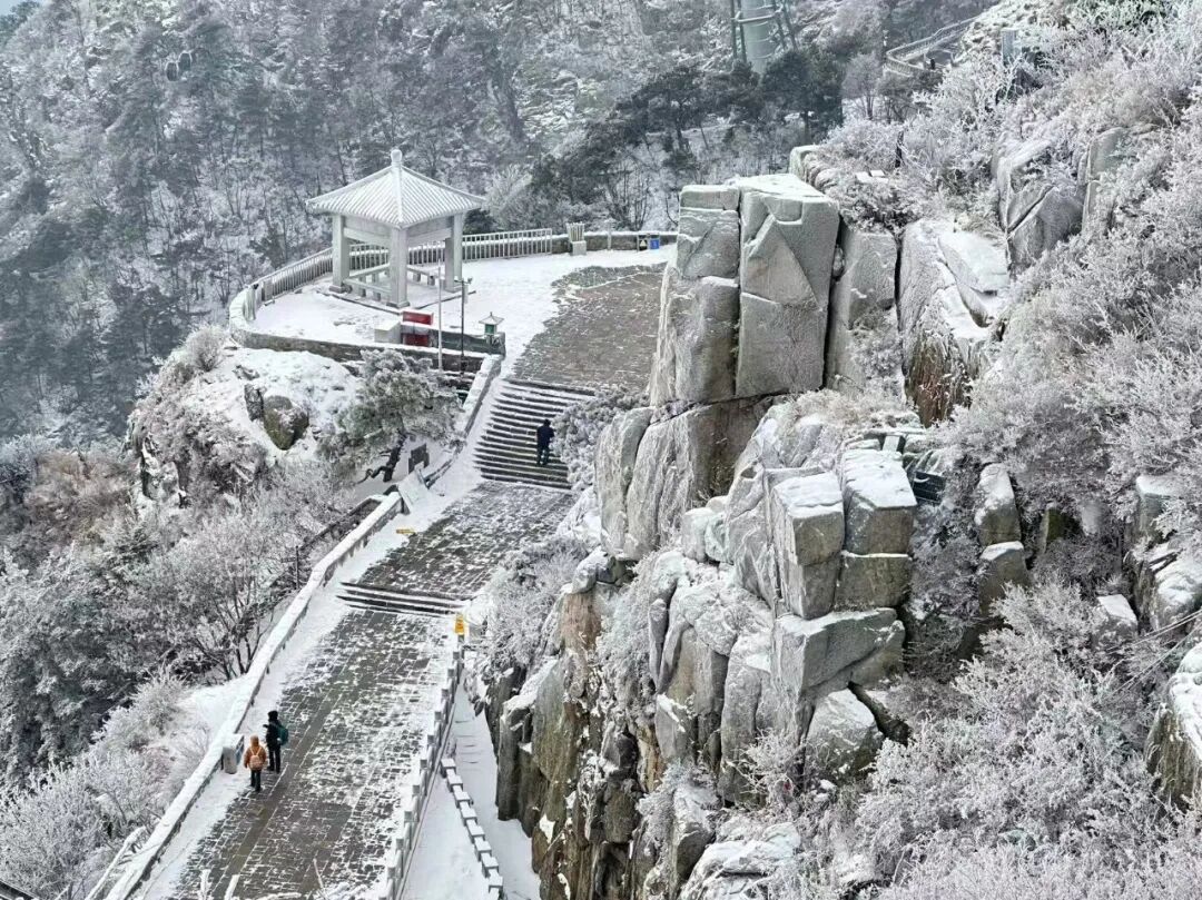 雪后泰山,道路湿滑,请中外游客入园后务必按照标识导引沿已完成积雪清理的主盘道游览,请勿进入非游览区、非开放区,请勿靠近积雪覆盖、水库塘坝、河溪泉瀑、悬崖峭壁、危石险段等区域。因索道受大风、冰冻等因素影响较大,请密切关注泰山景区和泰山索道公司的最新通告。