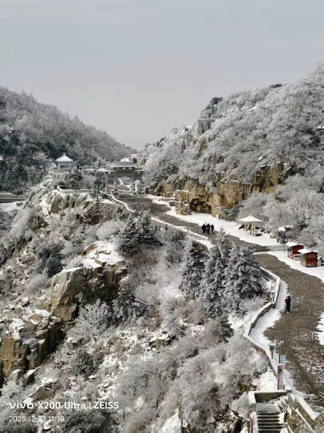 12月23日,泰山景区发布通告,据泰安市气象局统计,12月22日21时至23日8时泰山景区全区平均雨量3.6毫米,单站最大为泰山7.1毫米,中到大雪,其中,山顶为大雪。