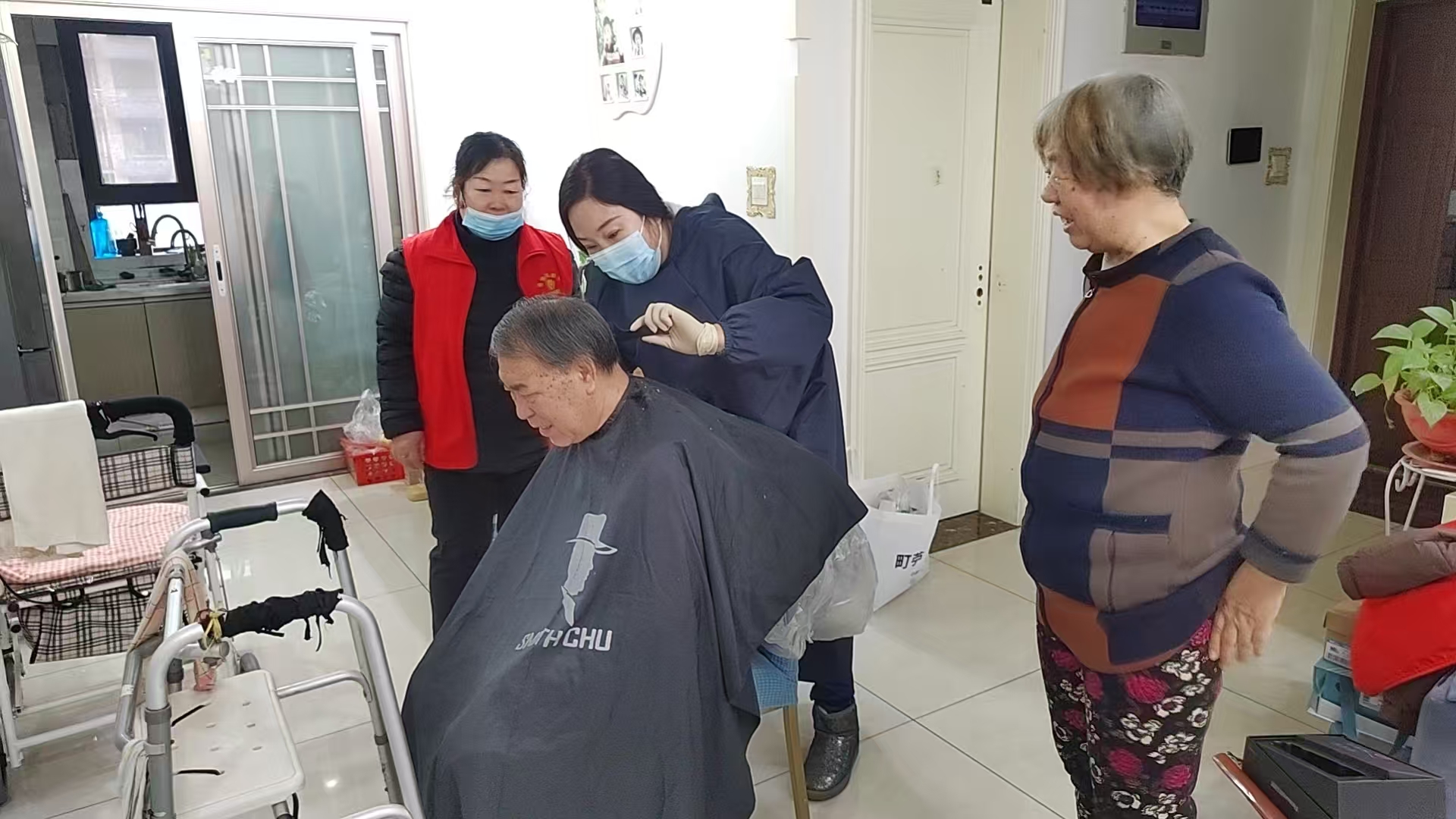 当日上午,在名士豪庭小区,每到一户,“流动理发店”的志愿者们都会热情地与居民打招呼,询问他们的身体状况和生活情况,让居民们感受到浓浓的关怀。在理发过程中,志愿者们更是展现出了高度的专业素养和耐心。他们根据居民的年龄、性别、脸型和个人喜好,精心设计发型,手法娴熟地操作着理发工具,力求为每一位居民剪出满意的发型。