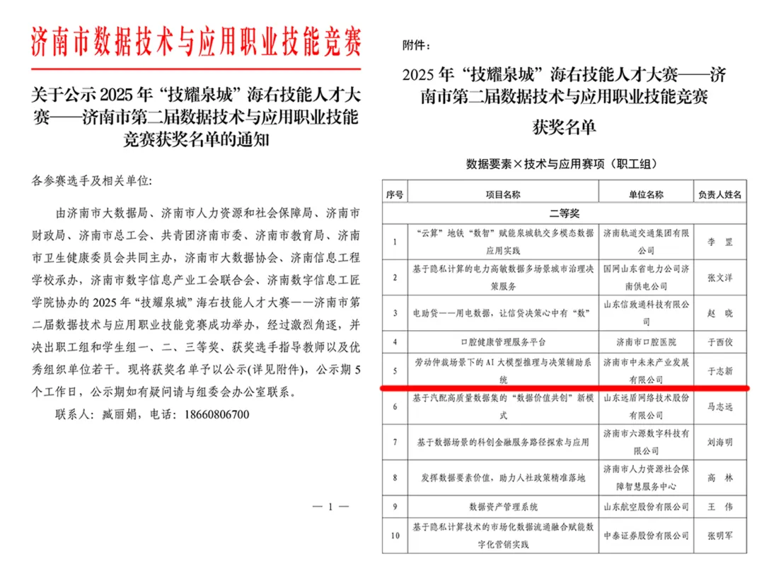 一是线索归集“一网通办”,实现快速响应。开发劳动监察三方线索管理平台,整合12345热线、“安薪码”等渠道线索,实现“一站归集、自动分流、区街闭环”。平台上线后,线索响应时间从48小时压缩至24小时内,响应速度提升30%。二是仲裁办案“智慧升级”,压缩办理周期。上线智慧仲裁系统,实现“线上立案、电子送达、智能文书”全流程数字化。系统通过“机器初筛+人工复核”过滤无效申请,内置100余种法律文书模板自动生成裁决书,办案人员文书撰写时间缩短60%,劳动仲裁AI应用获济南市第二届数据技术与应用职业技能竞赛二等奖。今年以来,线上立案占比达45%,平均办案周期从45天压缩至30天,实现群众办事“少跑腿、零跑腿”。三是政策服务“精准推送”,延伸便民触角。联合联通公司推出人社政务服务电话语音导航系统,群众通过咨询电话“87599919”,可按语音提示获取答案或转接业务科室,7×24小时提供政策咨询和精准转接服务。自系统上线以来,已累计服务群众2000余人次。