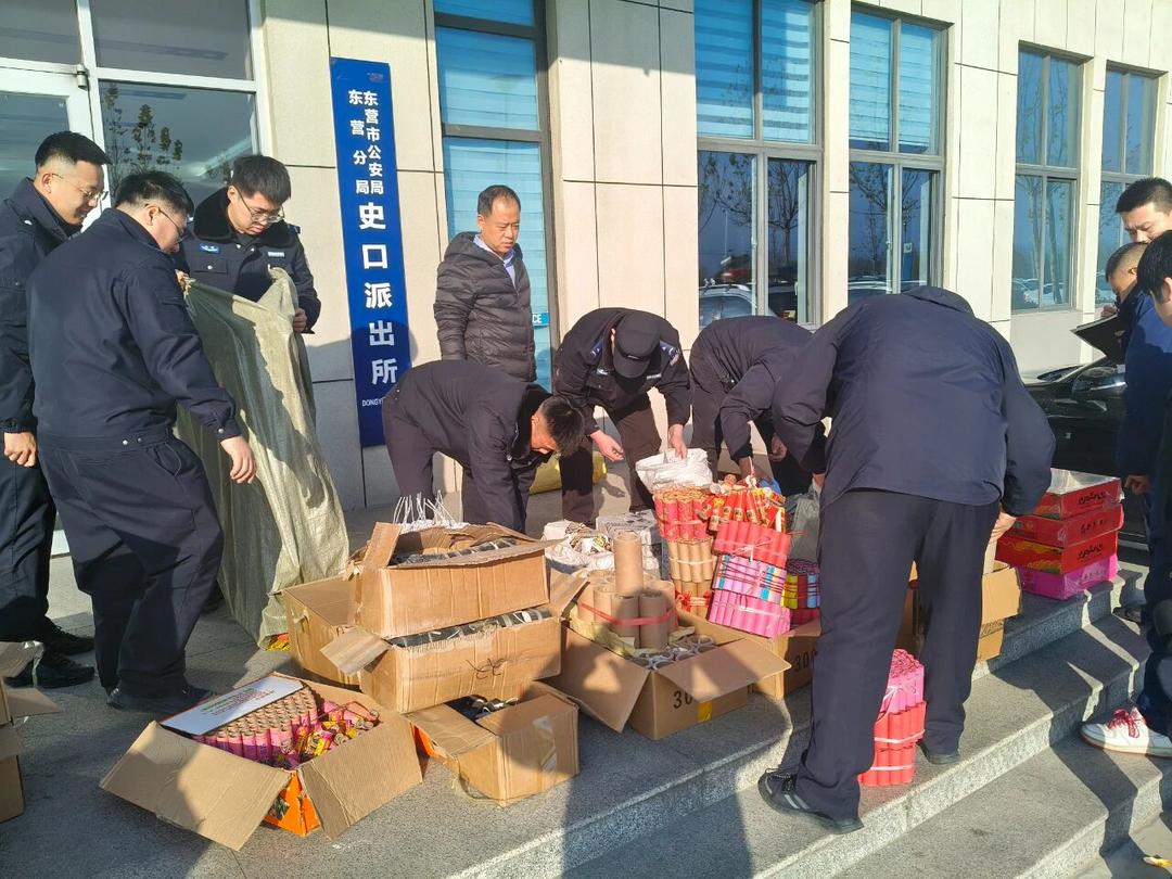 民警表示,烟花爆竹属于易燃易爆危险物品,未经许可无论是运输、储存或销售烟花爆竹都是违法。(来源:东营公安分局)