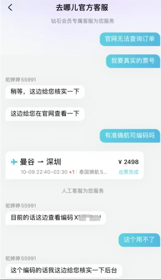 去哪儿网买的机票航司查不到!费用明细拒给乘客