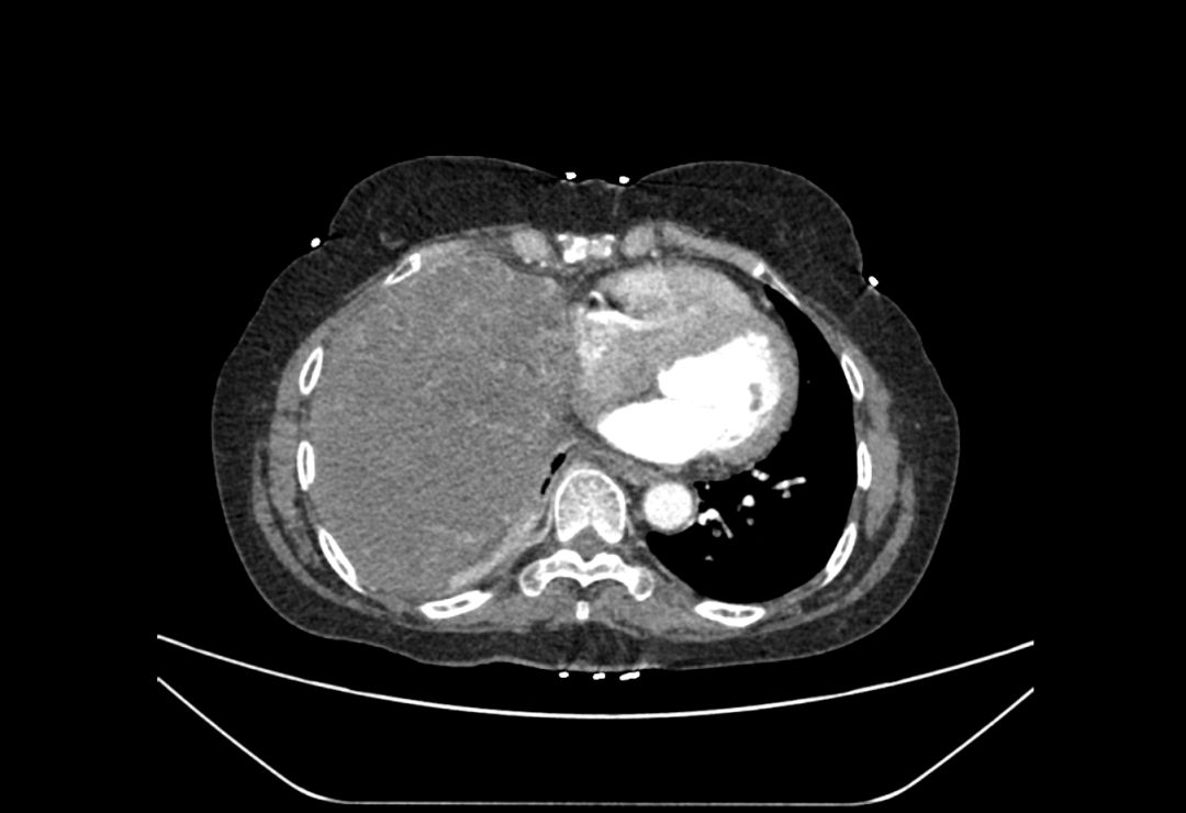 CT检查显示肿瘤占据患者整个右侧胸腔