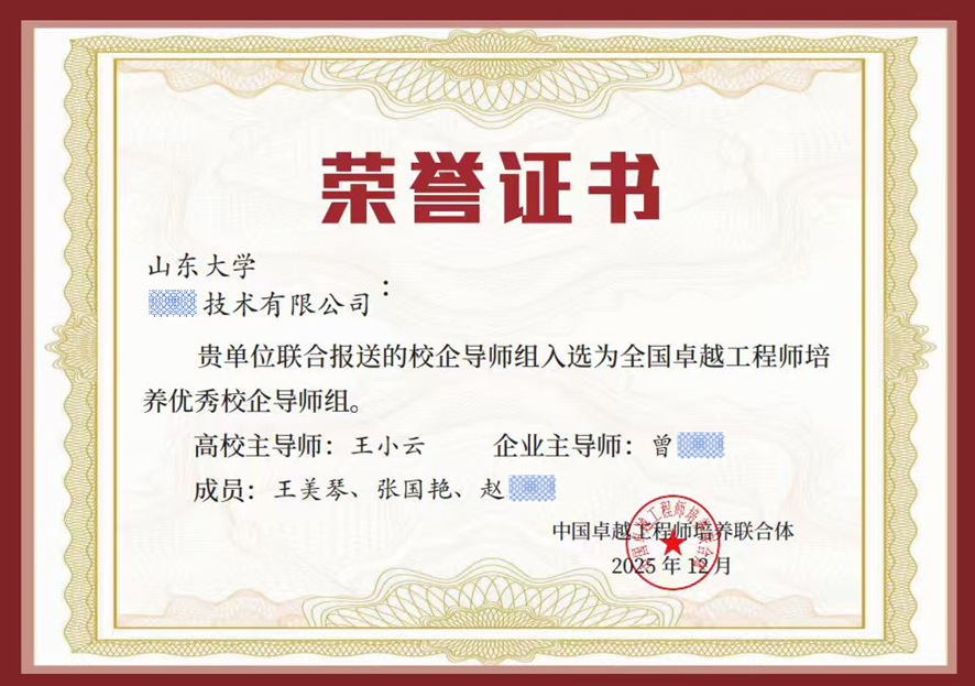 近日,中国卓越工程师培养联合体公布了关于卓越工程师培养优秀校企导师组、优秀案例及优秀实践成果名单。山东大学获优秀校企导师组(全国仅10项)和优秀实践成果奖(全国仅10项)。