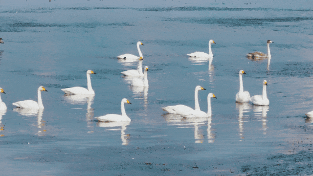 情报站|威海九龙湾迎来13只大天鹅,优雅觅食吸引游客驻足打卡