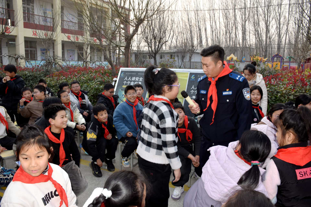 12月19日,枣庄市公安局薛城分局陶庄派出所(夏庄)走进陶庄镇前西小学开展“护航青少年健康成长——校园安全与心理公益宣讲”主题活动。活动以“宣讲赋能+互动实操+心理疏导”三维模式,将安全防护知识与心理健康引导深度融合,为全校学生送上“定制化安全成长礼包”。