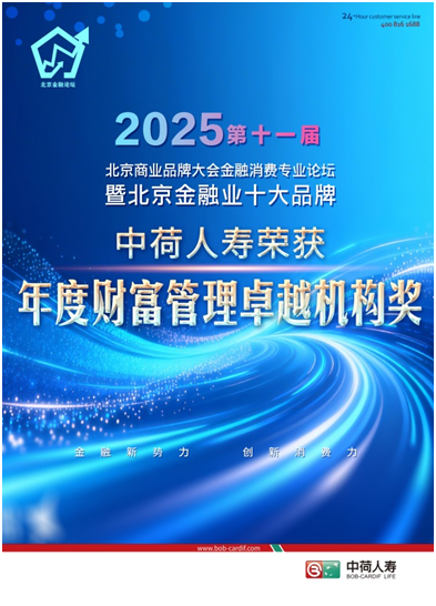 近日,在2025年度北京金融业十大品牌评选活动中,中荷人寿保险有限公司凭借其在财富管理领域的综合实力与创新实践,荣获“年度财富管理卓越机构”奖。该荣誉不仅是对中荷人寿财富管理专业能力的高度认可,更是对其始终践行长期主义、坚守金融为民初心的充分肯定。
