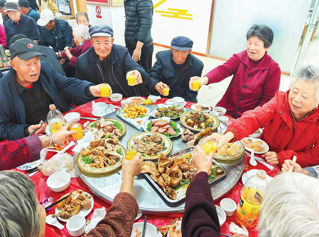 “百家宴”环节将活动推向高潮,邀请了99位80岁以上的高龄老人参加。居民们为老人们带来了红烧肉、水饺等饭菜,老人们一边品尝美味一边唠着家常,温馨氛围感染着在场每一个人。