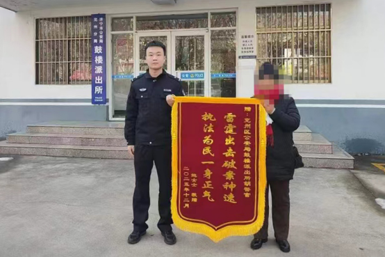 12月13日,鼓楼派出所接到群众报警,称其电动车停在亨利广场买菜时被盗。接警后,民警迅速赶到现场。经走访及调取周边监控,民警发现,当日该群众停车后未拔钥匙,一陌生男子见状,趁机骑走该车。通过循线追踪、分析研判,民警最终掌握了嫌疑人的活动轨迹和落脚点,成功将其抓获,追回被盗电动车。事后,失主专程将一面锦旗送到鼓楼派出所,对民警表示感谢。
