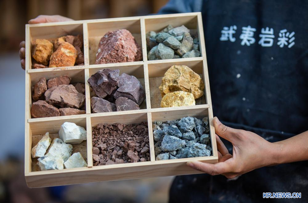 [신화망 우이산 12월24일] 푸젠(福建)성 우이산(武夷山)은 세계 문화유산이자 자연유산으로 지정된 지역이다. 이곳의 다채로운 암석과 토양은 회화에 쓰이는 천연 안료로 쓰인다. 우이산 암채화는 현대 미술과 융합해 우이산의 특색 문화로 자리 잡고 있다.