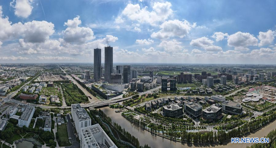 상하이 푸둥(浦東)신구에 위치한 장장(張江)과학성(城)을 지난 2023년 9월 10일 드론 파노라마 사진으로 담았다. (사진/신화통신)