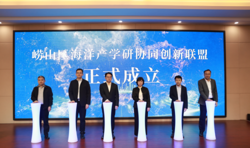 与会领导及理事长单位代表共同按下启动柱,标志着“崂山区海洋产学研协同创新联盟”正式成立。