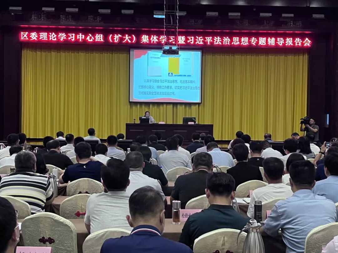 构建“五学联动”体系,五年来开展习近平法治思想专题学习69次,开展专项督察5次,纳入党校主体班次10期,制作“一把手谈法治”电视访谈23期,印发《法治建设提示函》60余份,推动学用转化。落实法治建设“一规划两纲要”,召开推进会6次,印发《共性任务指导清单》,发掘基层法治建设亮点。构建精准述法体系,多方式实现中层以上干部述法全覆盖。制定《党政主要负责人示范引领法治建设“五个一”工程实施方案》,推动77个单位建立法治建设台账。