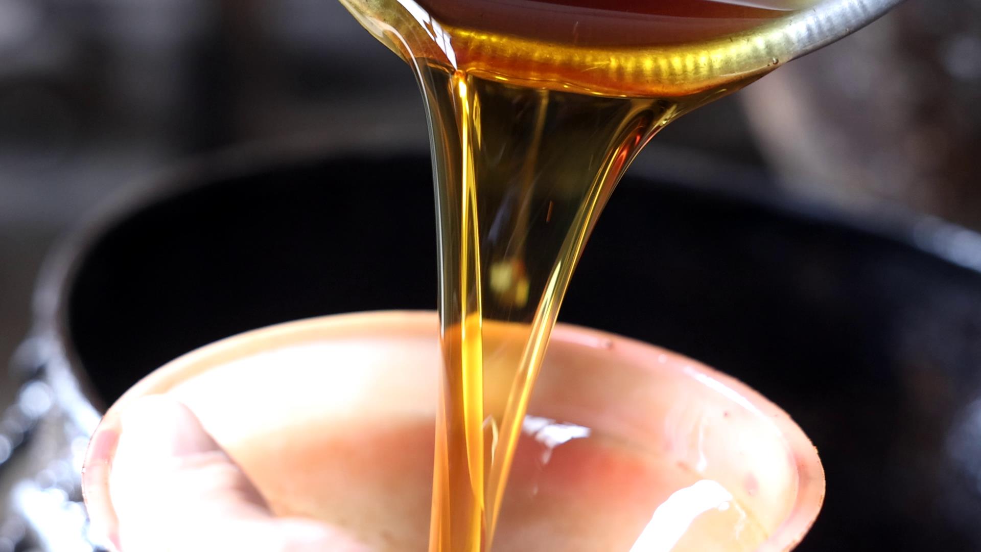 自早上六点至下午三点,九个小时,150斤芝麻换来60余斤如琥珀般透亮的香油。