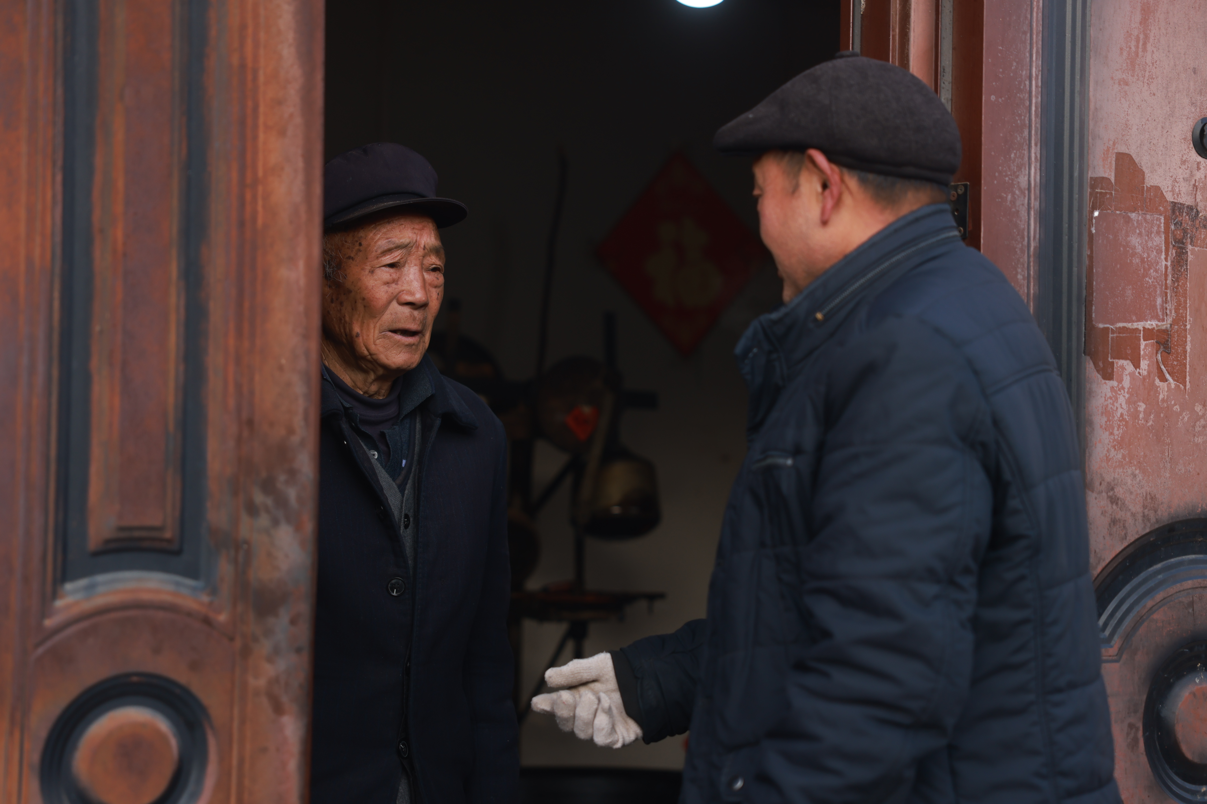 得知李如春今天又推起了香油,他的老友特意赶来购买,也许是因为许久未见,他亲切地为老友递上香烟,阳光洒在他那布满老人斑的手上,那双曾无数次摁压油葫芦的手,如今已经微微颤抖。