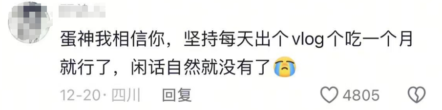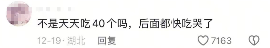 随着“爱吃蛋”的爆火,几天时间就涨粉超400万,据悉,该博主曾在评论区自称每天食用40个水煮蛋,持续五年,累计超十万颗,对火候掌控极为精准。12月18日,其发布吃40个鸡蛋的视频,并称为40个蛋白10个蛋黄,其余的喂宠物和流浪猫狗,引来更多的质疑声。