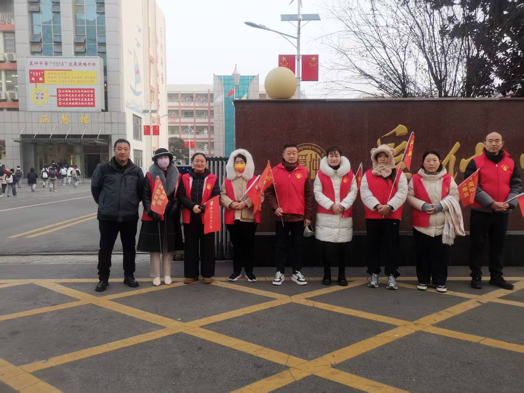 为筑牢校园安全防线,保障学生上下学出行安全,奚仲中学家长护学岗与学校值班老师并肩值守,共同织就校园周边安全防护网。