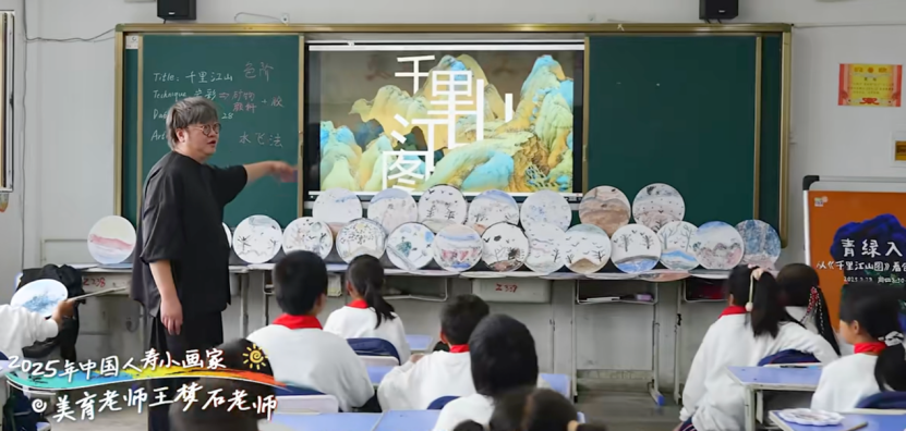 “《千里江山图》里青山的颜色,其实来自于矿物颜料哦!”甘肃临夏州积石山县前岭小学的课堂上,老师的话音刚落,孩子们便迫不及待地围上来,指尖轻轻蹭过石青、石绿颜料。这堂从传世名画延伸的美术课,不仅教孩子们调色施彩,更让他们触摸到传统文化中“多一分则浊,少一分则薄”的细腻美感。前岭小学的另一节美术课上,老师拿着三星堆面具模型,和孩子们开起“面具故事会”。从面具的起源,到不同文化中面具的符号意义,孩子们循着历史脉络展开想象,把对传统文化的理解画进自己设计的面具里。