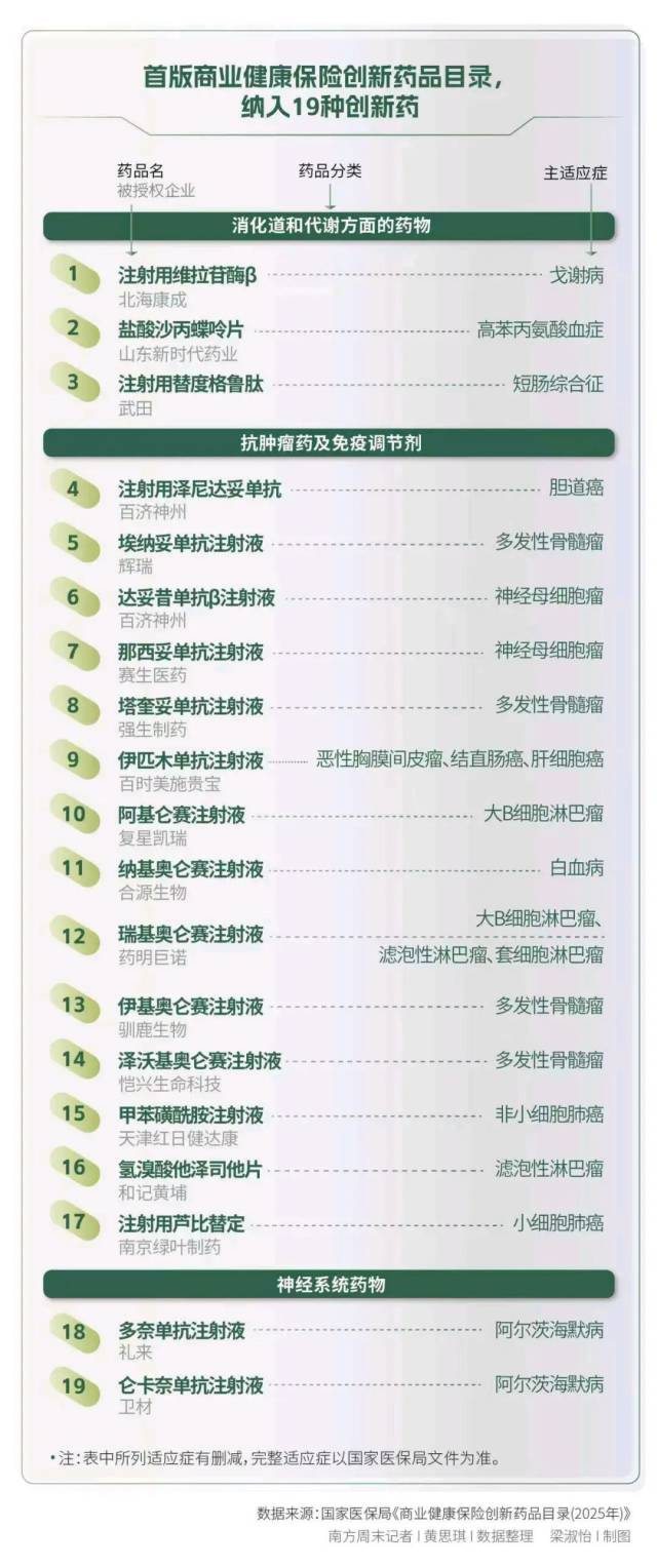 2025年12月7日,2025创新药高质量发展大会在广州召开,会上发布了2025年《国家基本医疗保险、生育保险和工伤保险药品目录》(下称“基本医保目录”)以及首版商保创新药目录。