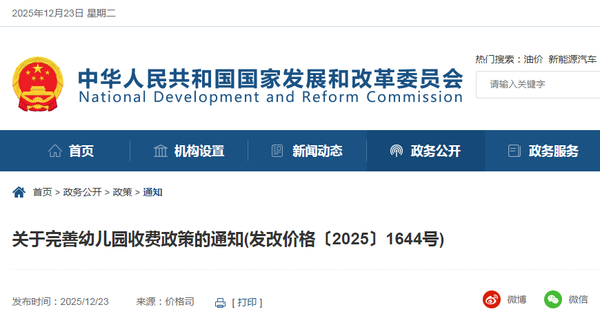 12月23日,国家发展改革委网站发布国家发展改革委 教育部 财政部关于完善幼儿园收费政策的通知。