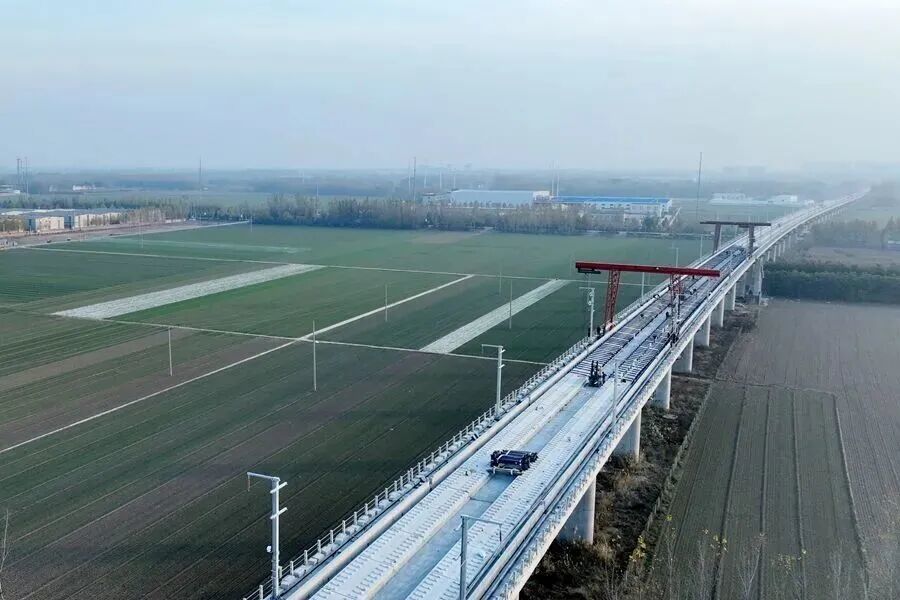 近日,雄商高铁聊城段钢轨铺设任务圆满完成,如期实现“轨通”。当前,该段通信、信号等“四电”工程已完成约80%;临清东站、阳谷东站两座车站主体结构已全面封顶,装饰装修与配套市政工程正同步加速推进。