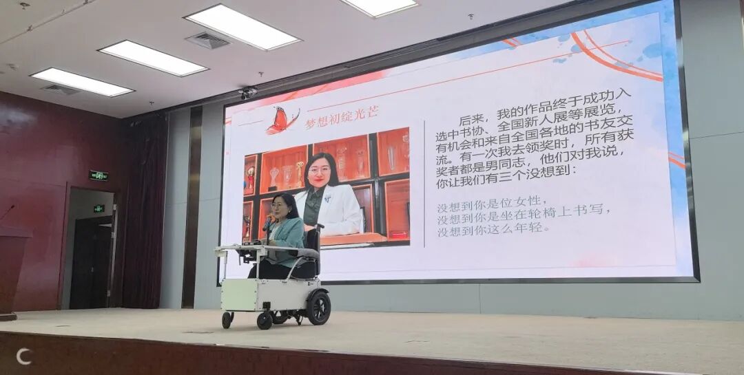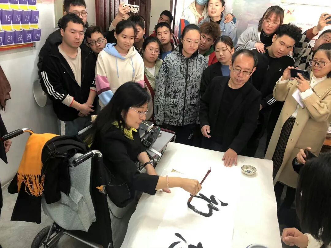 心中有光,脚下有力,照亮别人,也温暖自己。2019年,刘晓清走进山东第二医科大学,随后“阳光晓清”工作室在学校挂牌成立,为大学生教授书法。今年9月,晓清书法艺术馆在山东第二医科大学挂牌成立,这也是目前全省唯一一位在高校成立艺术馆的女书法工作者。2024年11月,“古风齐鲁最忆潍州”潍坊市特殊美育艺术成果展走进中国残疾人联合会,该展览重点展出了刘晓清创新书法作品。