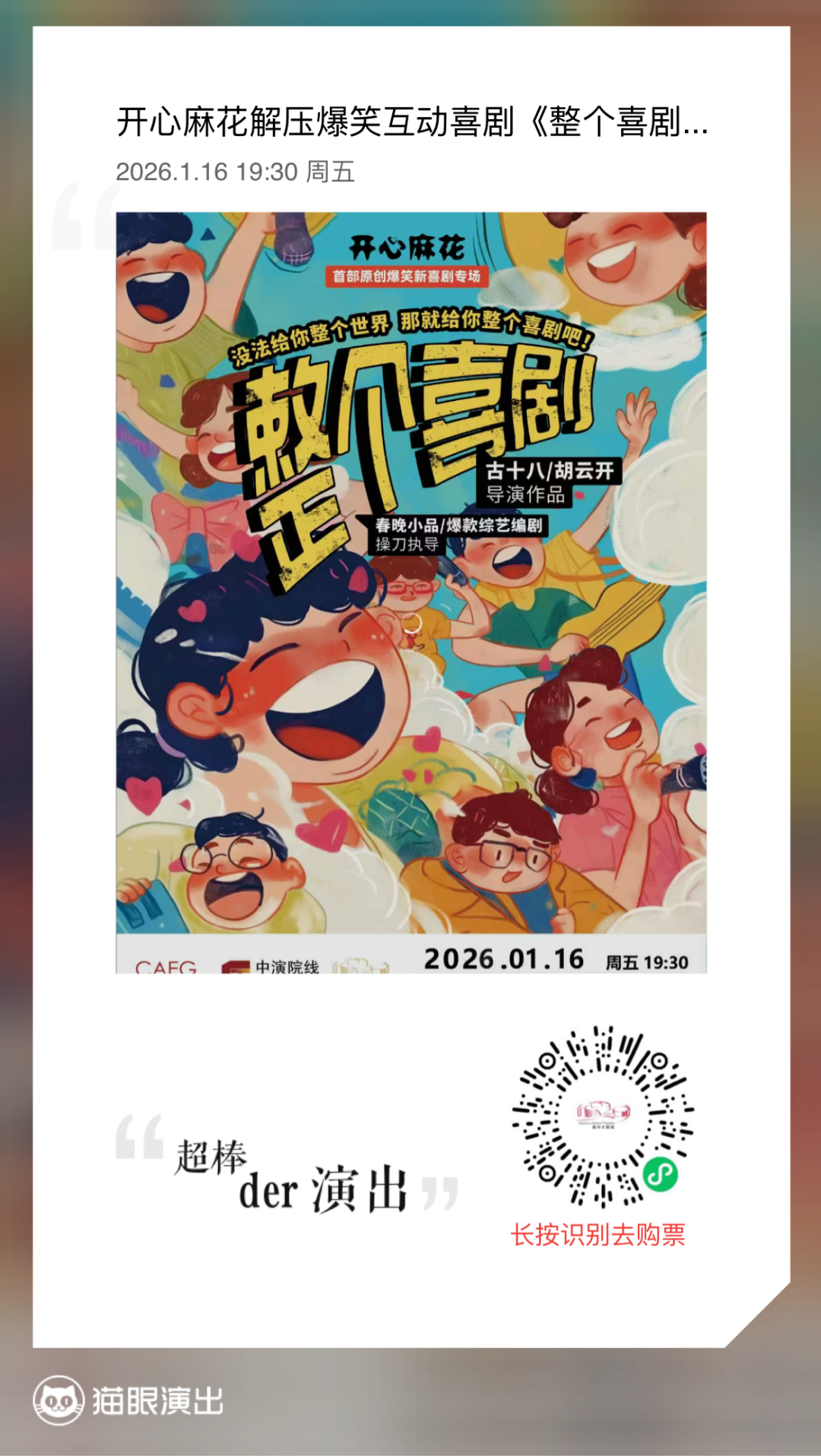 限时第二张0元!综艺同款《整个喜剧》空降德州大剧院!