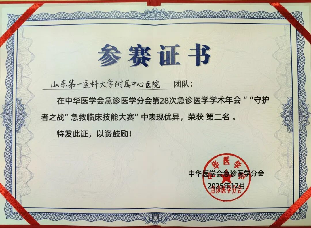 济南市中心医院在中华医学会急诊医学分会第28次急诊医学学术年会临床技能大赛获得佳绩