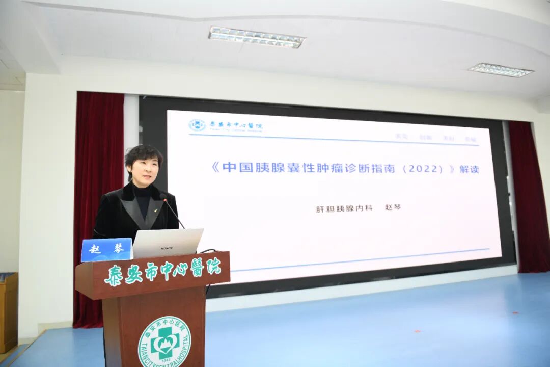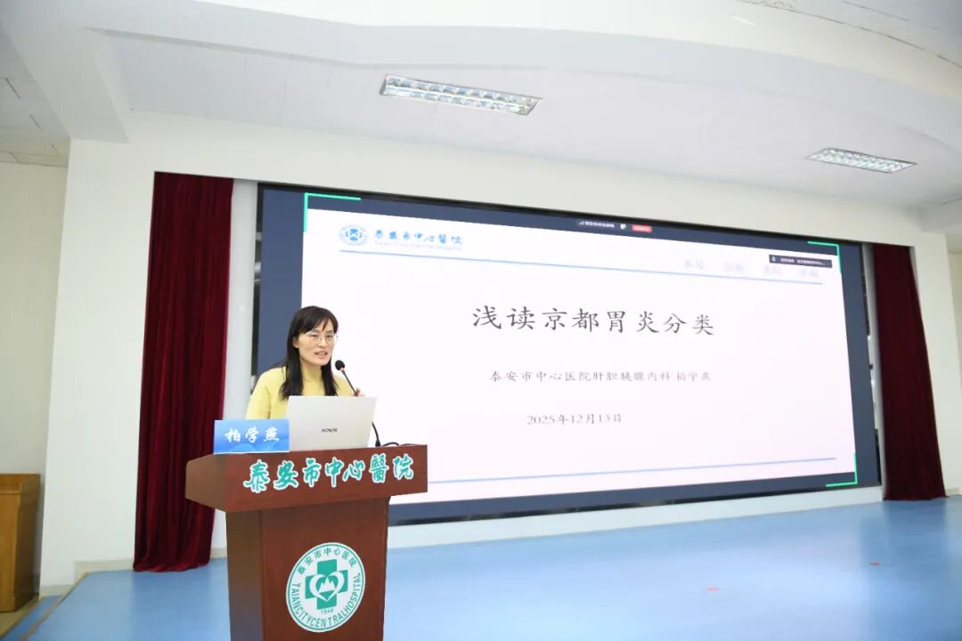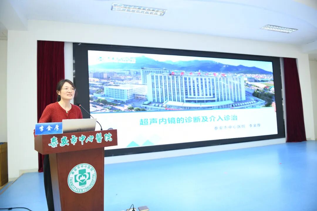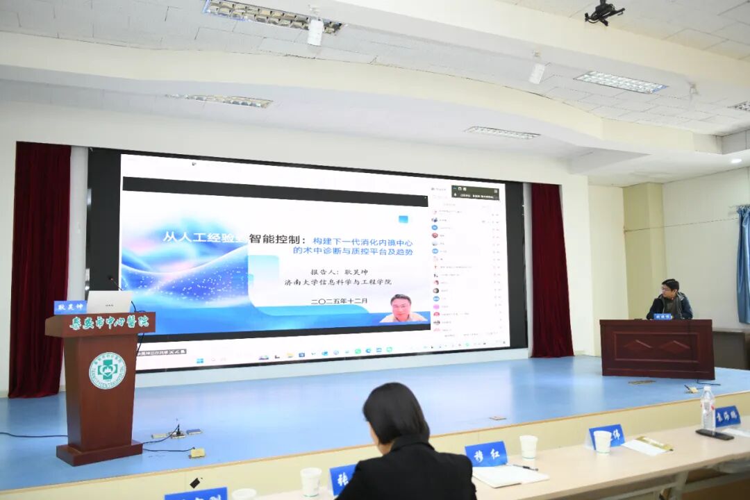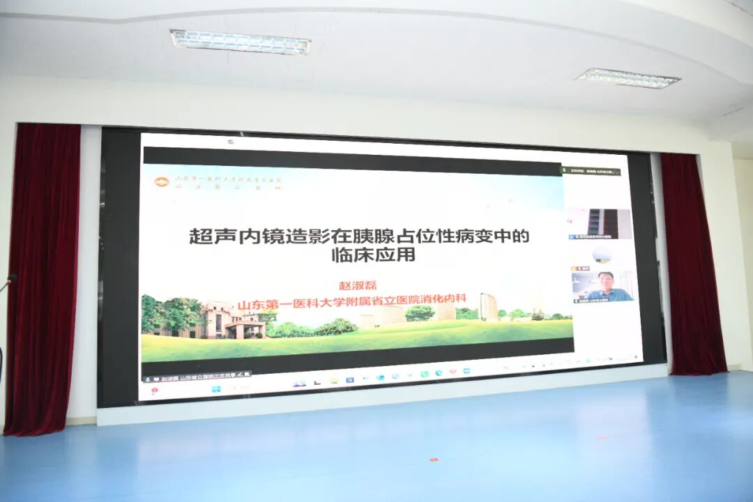 学术交流环节,多位权威专家通过“线上+线下”相结合的方式,带来一场高水平的学术盛宴。重庆医科大学外科学教授、博士生导师陈文直,复旦大学附属中山医院徐汇医院放射科主任许永华,山东省立医院消化内科主任医师赵淑磊,济南大学副教授耿昊坤,以及泰安市中心医院王晓虹、赵琴、李金厚、柏学燕等本地专家,围绕肝癌与胰腺癌的微创介入治疗、胰腺囊性病变管理、超声引导下诊疗技术、京都胃炎分类新进展、消化内镜AI质控一体化平台建设等前沿热点作专题报告,内容兼具理论深度与临床实用性,为与会人员开拓了视野、更新了理念。