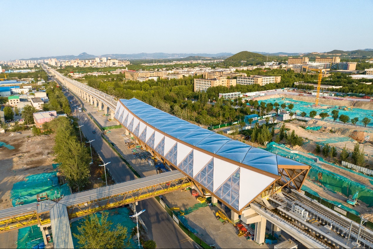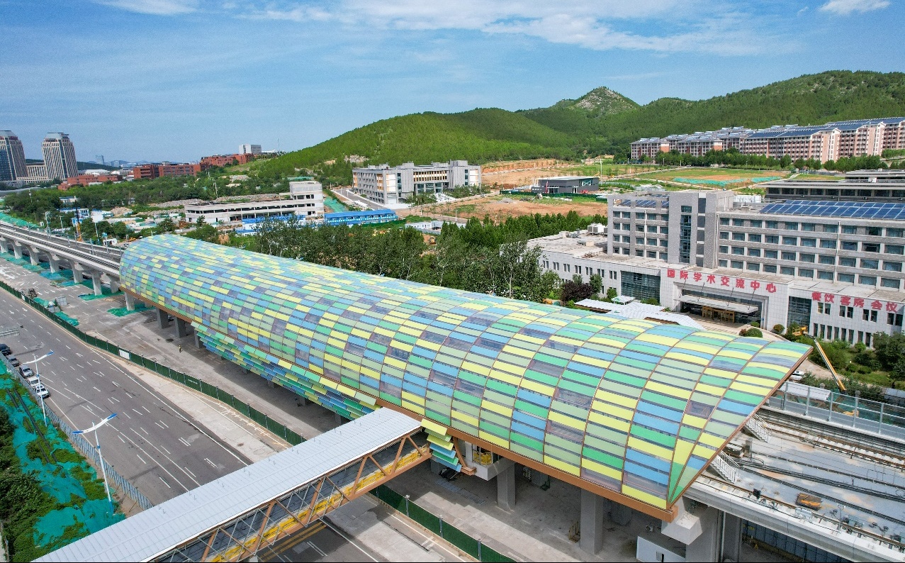 8号线山东大学站位于章丘区龙山街道圣井立交桥西南侧,车站总长约140米,宽约40米,采用“站城一体”设计理念,与未来商业开发相结合,是一次TOD新模式的积极探索。