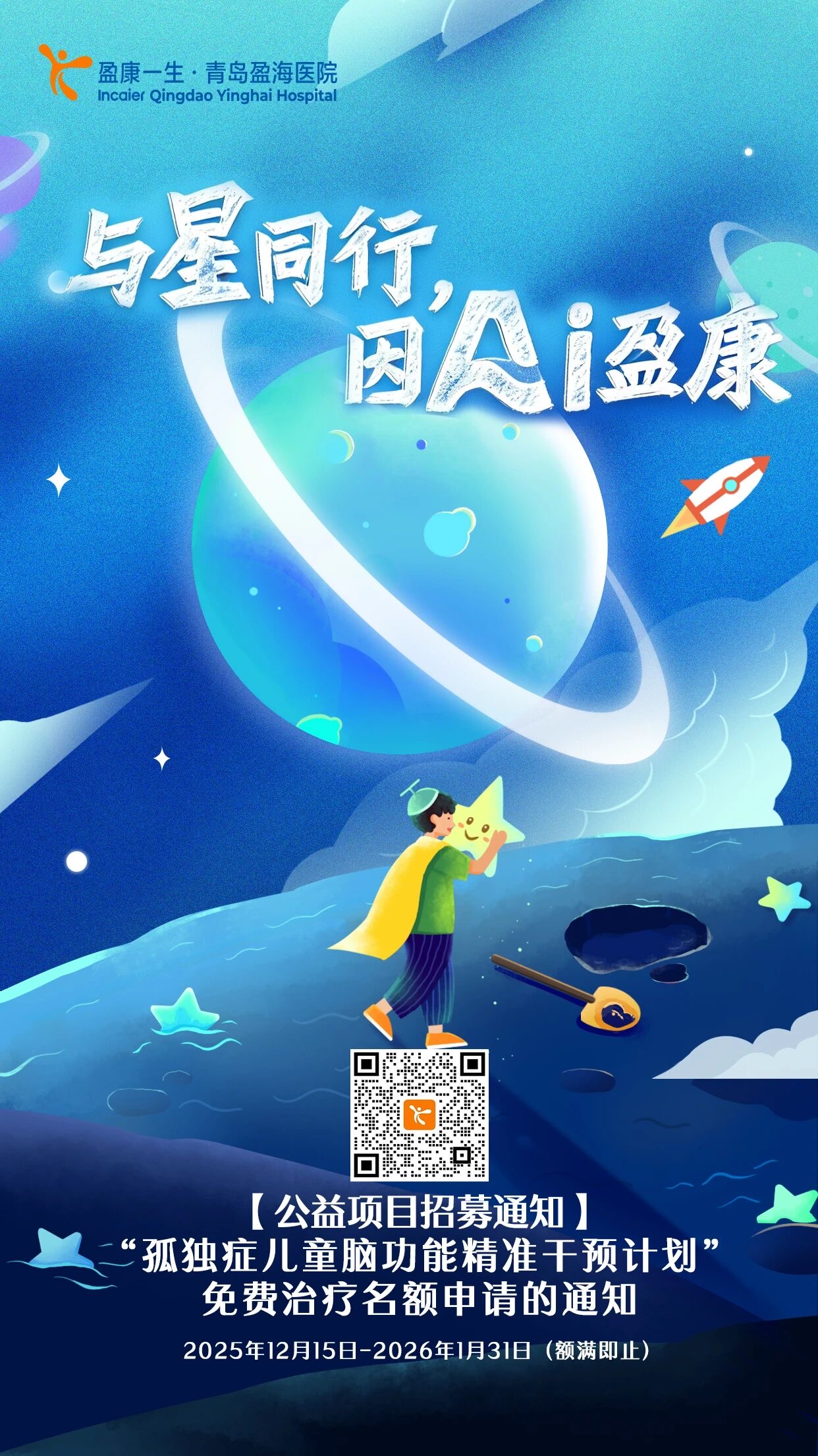 为积极响应国家关注特殊儿童健康的号召,推动前沿脑科学技术的临床转化与应用,盈康一生·青岛盈海医院正式启动“孤独症儿童脑功能精准干预计划”公益项目。该项目将通过国际领先的“优点疗法”,为孤独症谱系障碍(ASD)儿童提供个体化、精准化的脑功能干预服务,现面向社会公开招募符合条件的患儿,特别提供6个全额免费治疗名额,用科技力量为“星星的孩子”搭建康复桥梁。