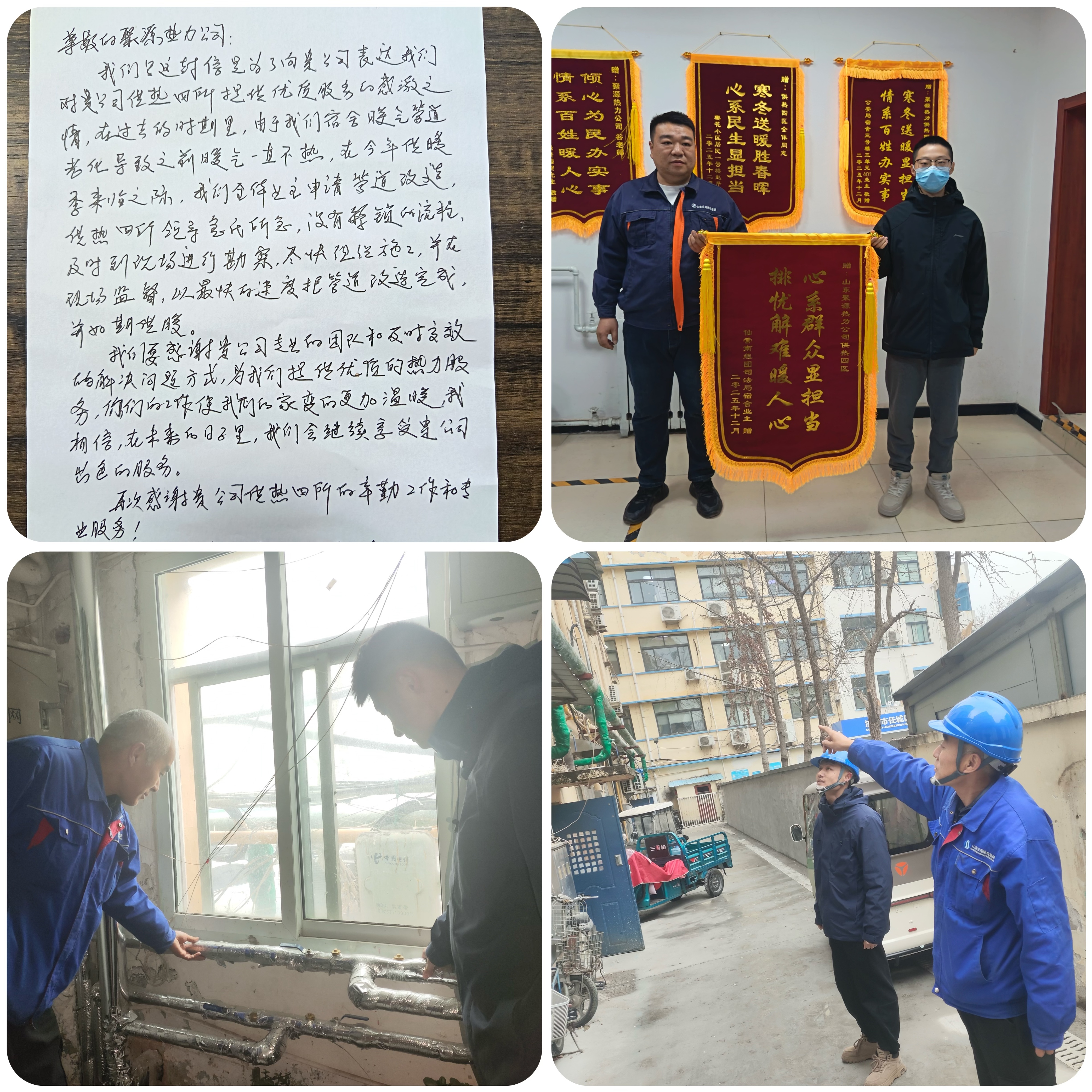 近日,济宁市任城区仙营南组团司法局宿舍的业主们联名致信山东聚源热力有限责任公司,字里行间满是对供热四区高效服务、专业改造的由衷赞誉。供热四区用实干与担当,顺利完成了司法局宿舍从串联到并联的管网升级改造,啃下了管网改造的“硬骨头”,让暖改工程成为了连接民心的“暖心桥”。