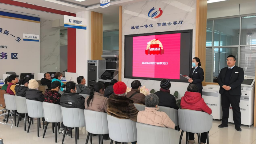 “各位参加活动的客户,请到这边登记签到,领取礼品,咱们稍等片刻,活动马上开始!”活动前工作人员有序地指导客户进行签到落座。活动伊始,工作人员从存款到贷款、专属优惠到增值服务,逐一进行拆分讲解,让客户清晰了解会员专属福利。同时,围绕医保养老缴费民生热点,现场演示线上缴费步骤,针对客户提出的缴费难题耐心答疑,让客户学以致用。