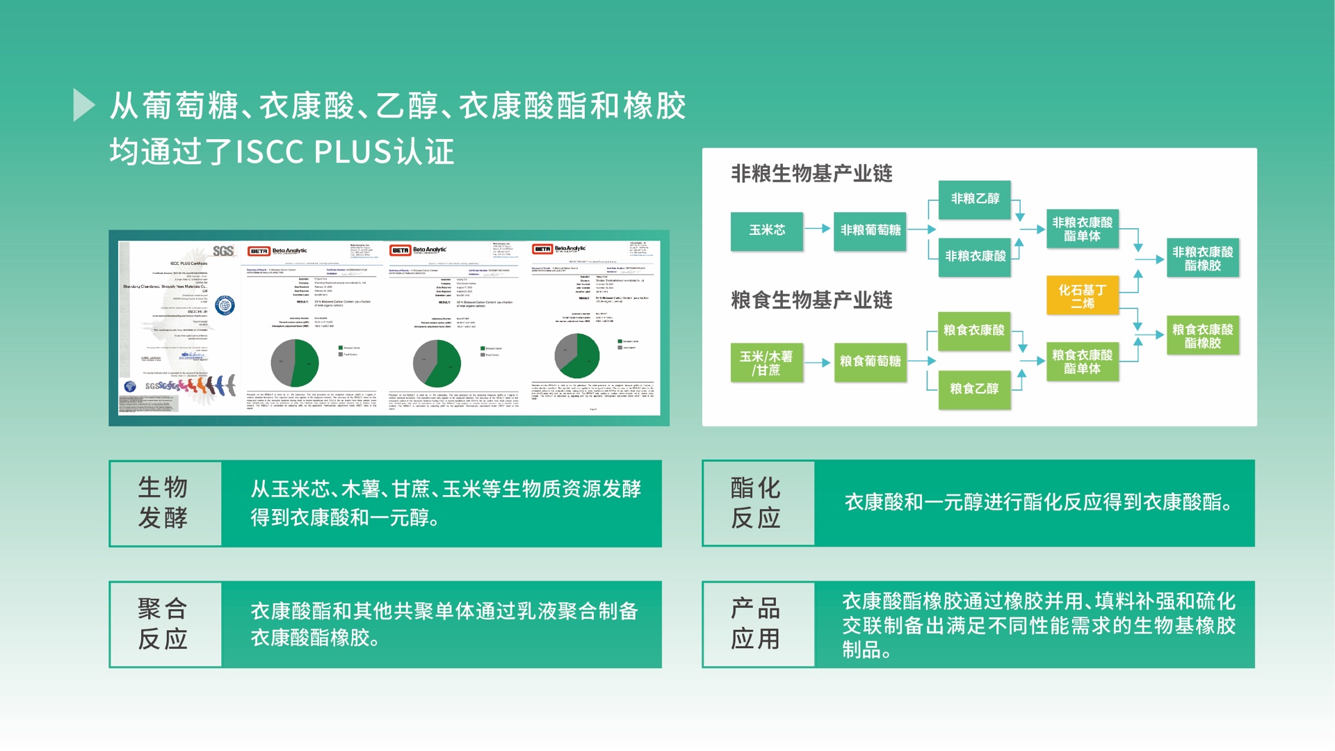 该技术以秸秆、玉米芯等非粮生物质为原料,通过生物发酵制成衣康酸,进而合成高性能橡胶材料。该路径不仅实现了农业废弃物的高值化利用,也避免了生物基材料“与粮争地”的矛盾,有助于降低对石化资源的依赖,助力“双碳”目标推进。