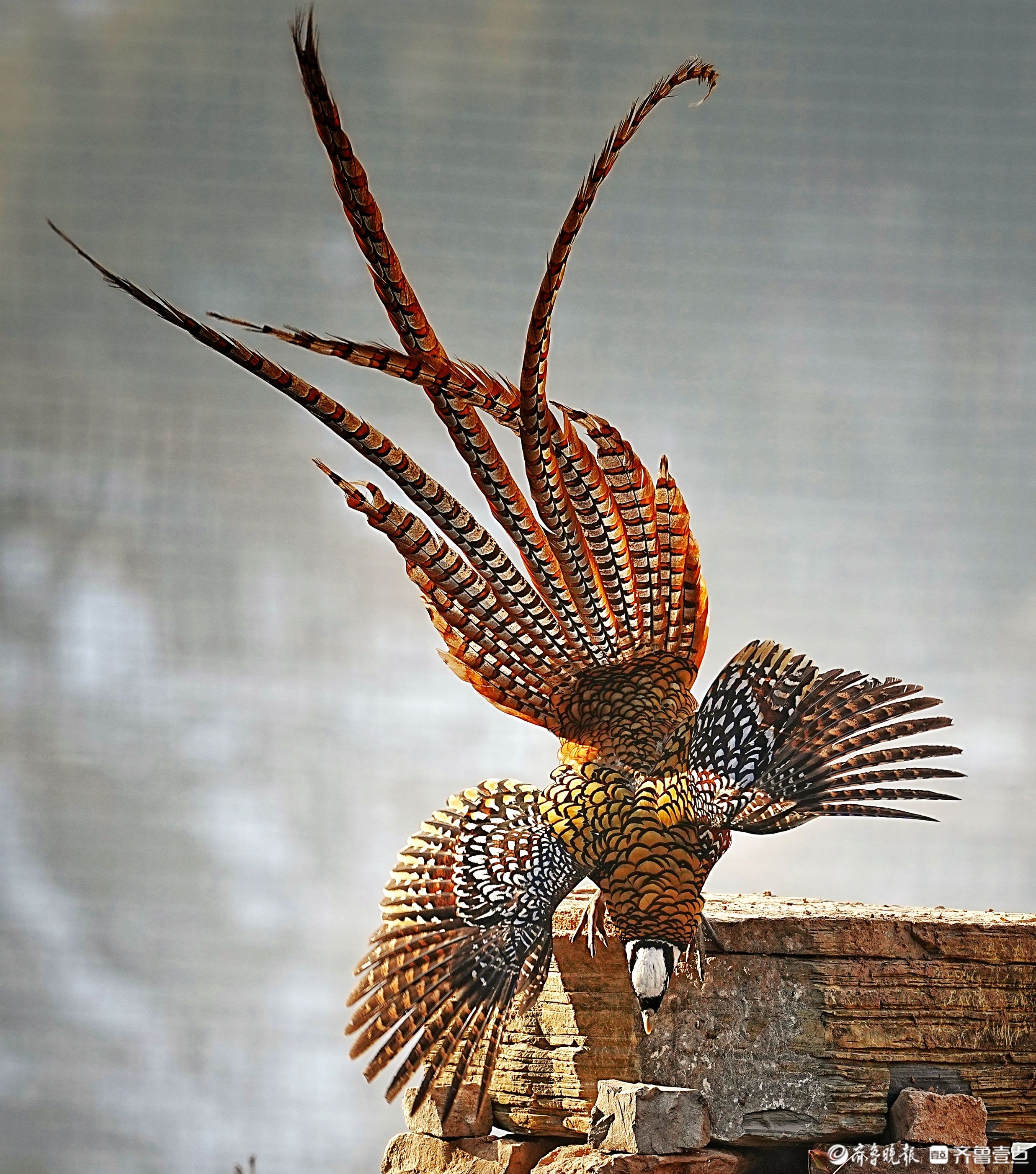 山西翼城,倒立的白冠长尾雉