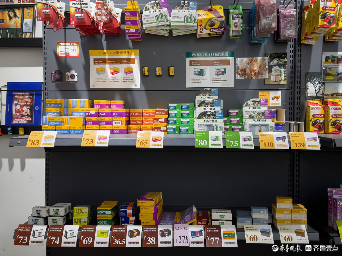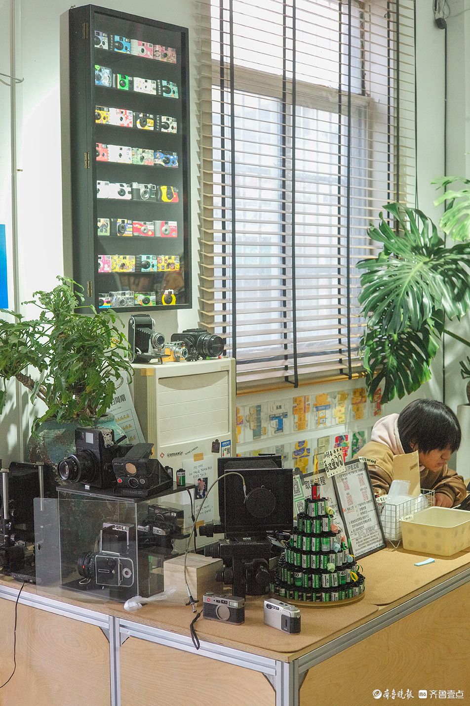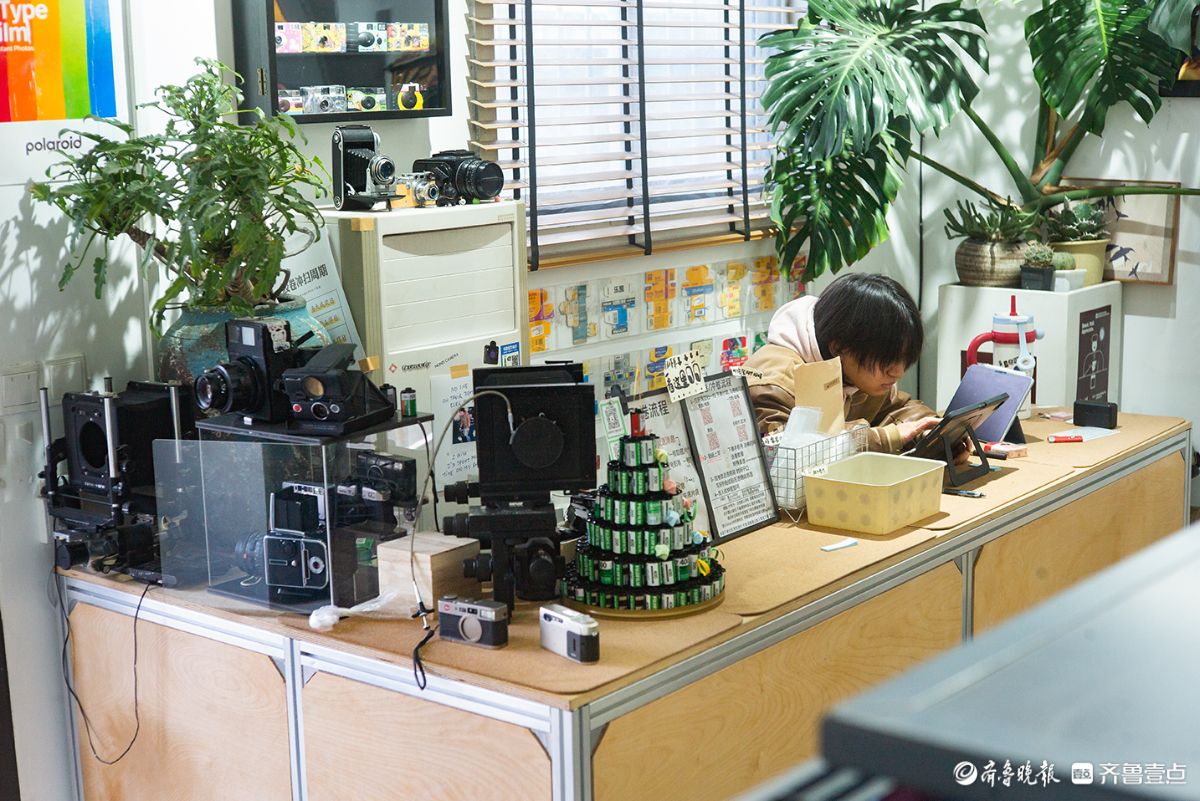 12月20日在济南菲林实验室胶片摄影俱乐部接待室里货架上堆满了各色胶卷与摄影配件复古相机与胶片装饰墙衬着皮质沙发把胶片爱好者的松弛交流感揉进空间里这里既是胶卷选购器材交流的据点也是济南胶片圈子的线下会客厅王剑摄
