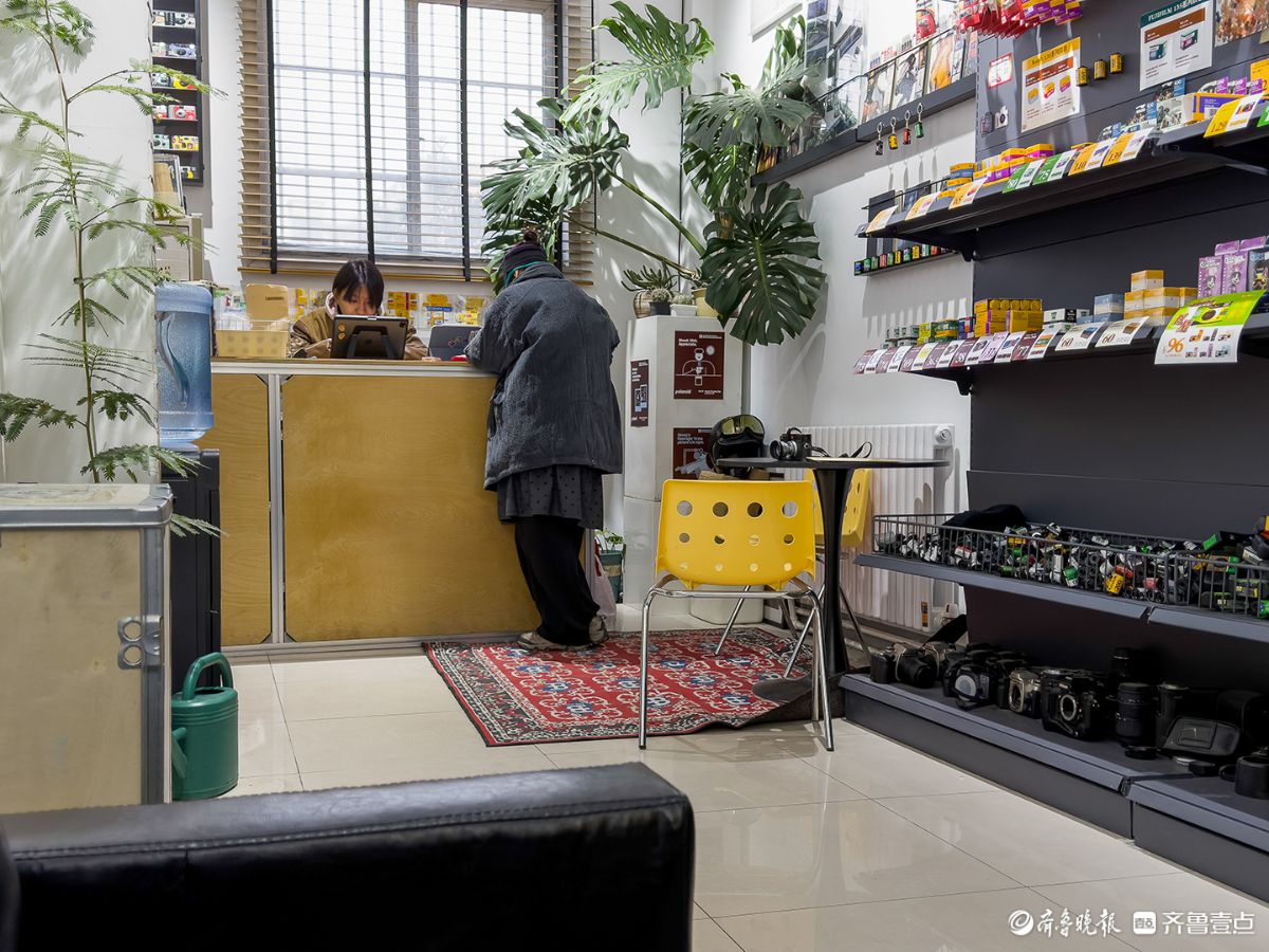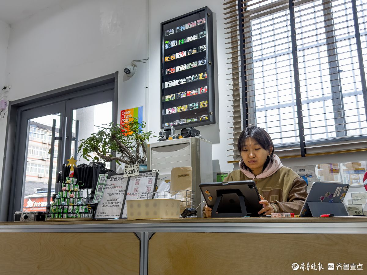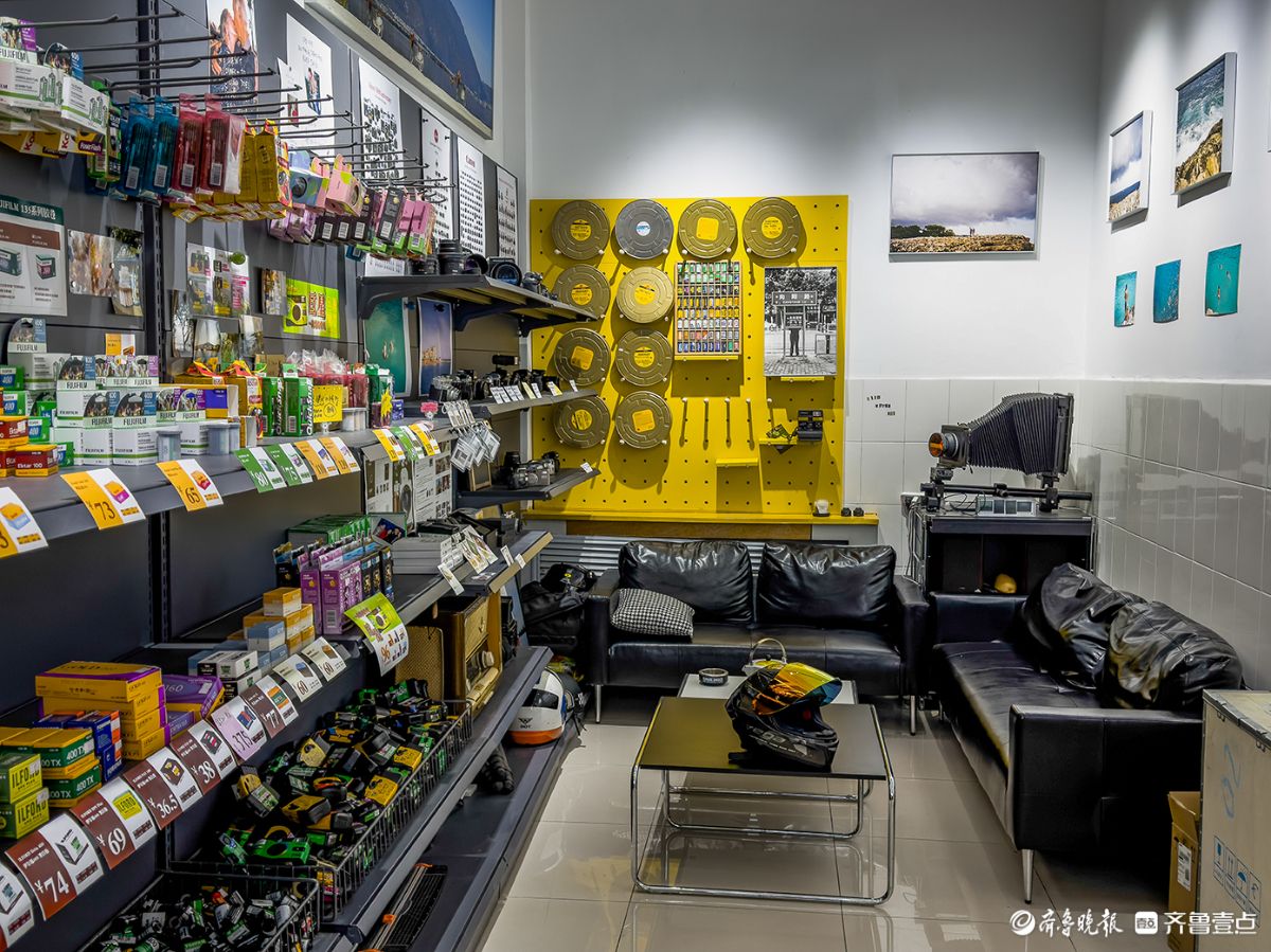 12月20日在济南菲林实验室胶片摄影俱乐部接待室里货架上堆满了各色胶卷与摄影配件复古相机与胶片装饰墙衬着皮质沙发把胶片爱好者的松弛交流感揉进空间里这里既是胶卷选购器材交流的据点也是济南胶片圈子的线下会客厅王剑摄