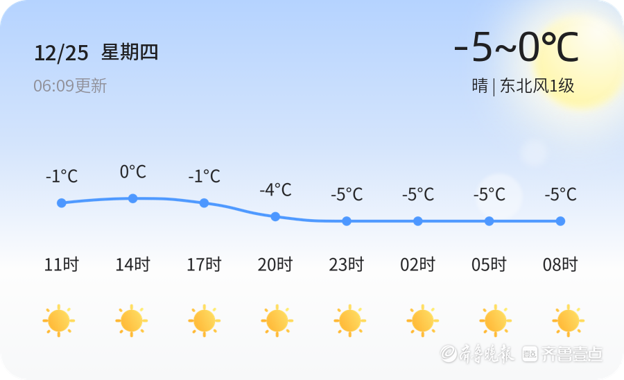 今天是12月25日,星期四,农历十一月初六。德州迎来晴朗天气,气温较低,目前气温为-3.1℃,东北风1级,空气湿度为38%,PM2.5浓度为15,空气质量为优。市民出行时需注意保暖,防范低温带来的不适。建议市民在早晨和夜间增加衣物,保持温暖,同时注意交通安全,避免因路面结冰滑倒。