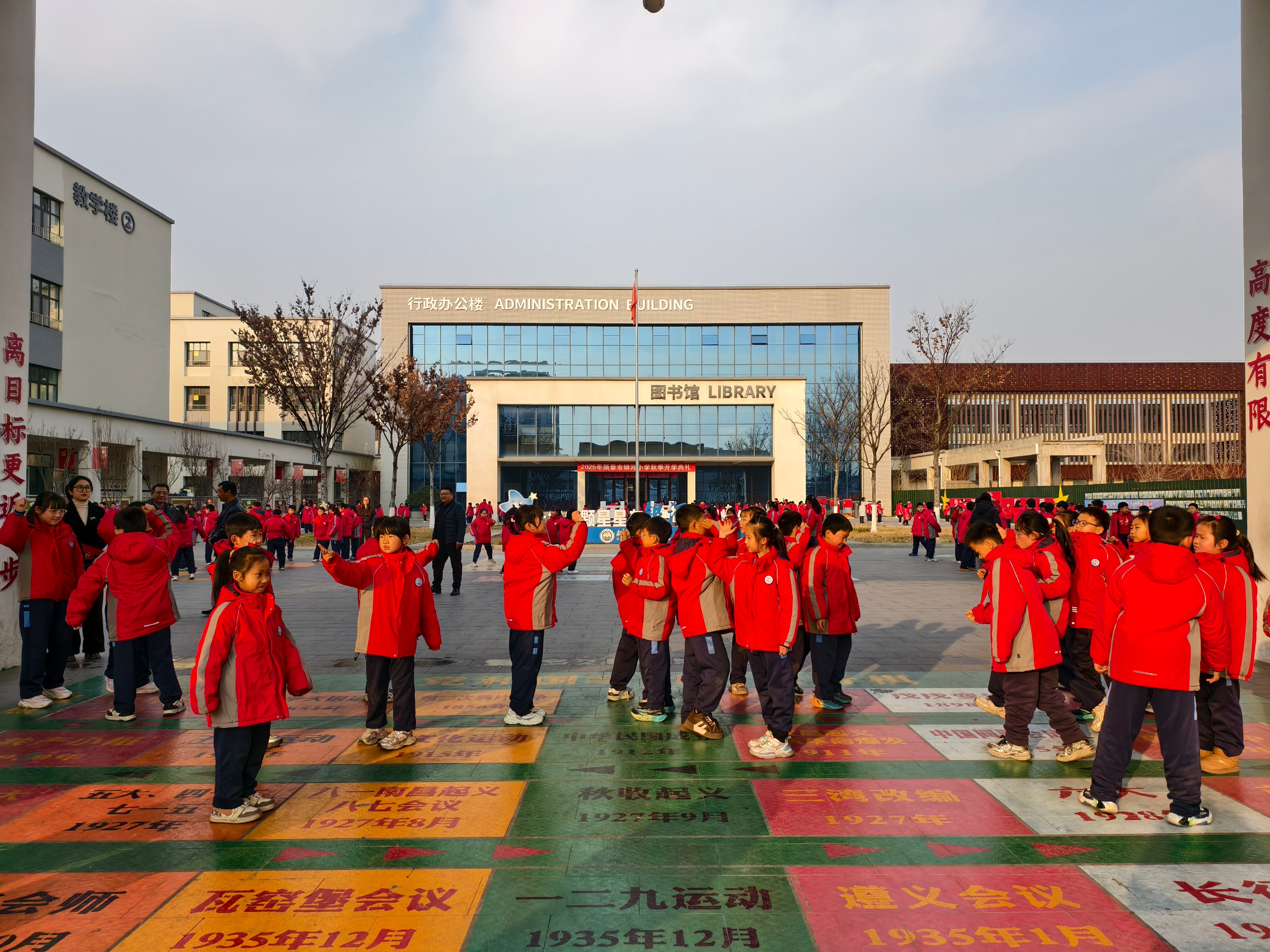 走进新泰市银河小学,首先映入眼帘的是校园广场上“交通安全跳格子”“爱国诗词闯关”“声母跳”等地面游戏。这里不仅是孩子们的课间乐园,更是思政教育的动态课堂。学校将安全规则、爱国情怀、学科知识融入游戏,让学生在跳跃与思考中,自然养成“文明”“守法”的素养。